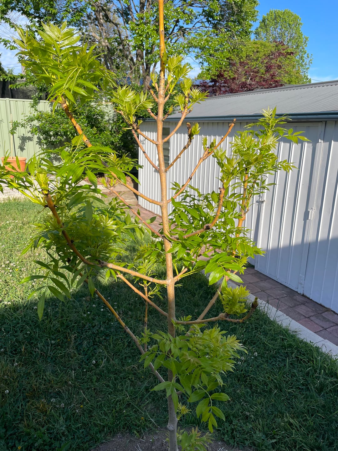 It is possible to have a [beautiful golden ash with low branches](https://mountainviewnursery.com.au/products/fraexcaur?srsltid=AfmBOopzbWTr0MCF0E2G3TXCJrswW2ZvnA7rUw94ialjc-nKGKm5HMjd), but it comes with the risk of a weaker connection that fails and leaves a big wound. If low branches are tempting, let a couple on opposite sides grow and make a final decision in a couple years.