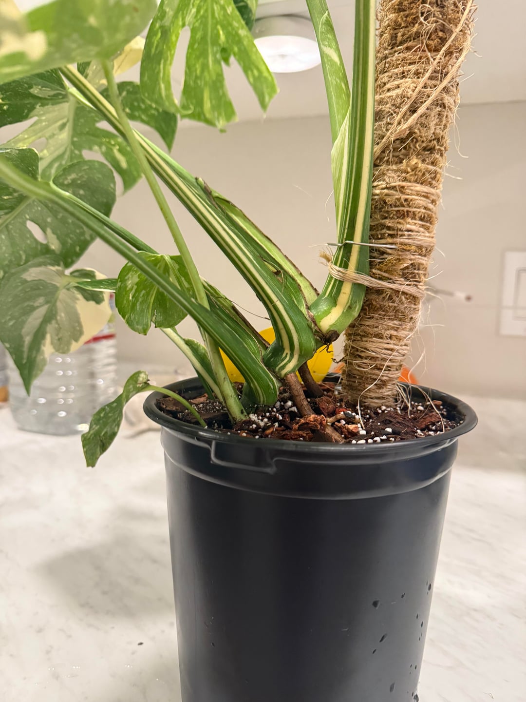 I’ve learned how to make a chunky aroid mix with Grow Queen’s Craft Aroid Mix, charcoal, and orchid bark. I think I added perlite as well.
