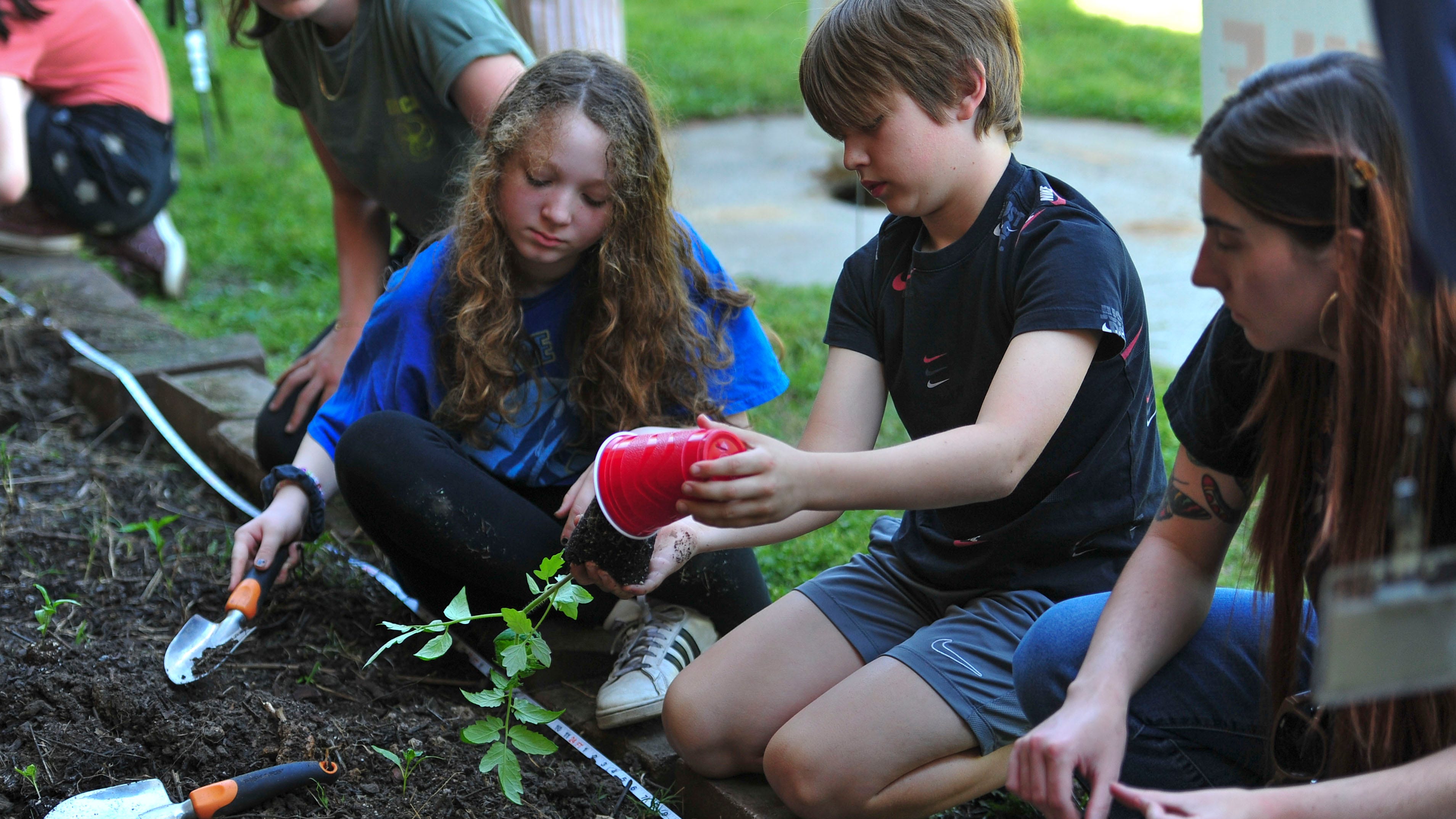 Watch the Vine Middle School Garden Club plant seedlings on Wednesday, May 1, 2024.