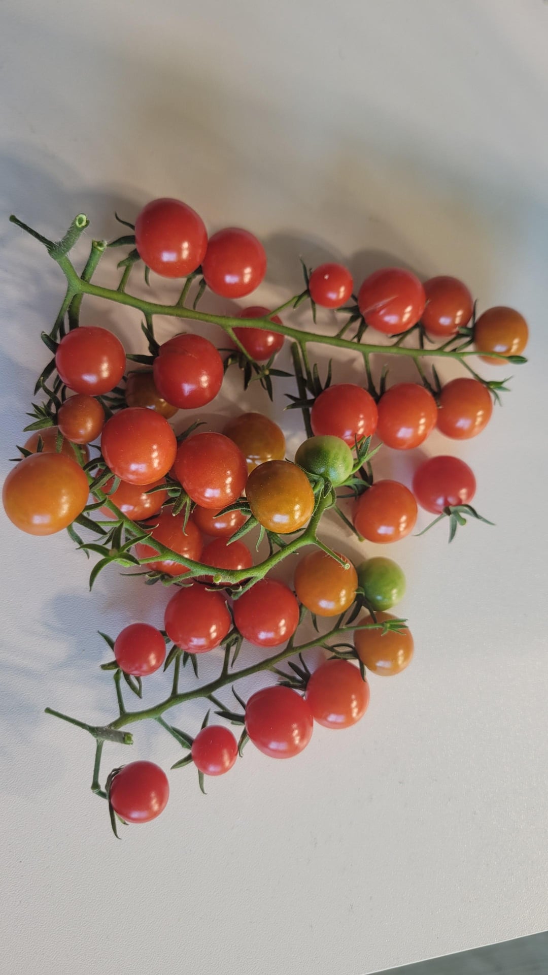 the amount of fruit that's being produced is amazing, the aroma from the plant is delicious, the cherry tomatoes are so juicy and tart and filled with an incredible amount of flavor. Better than anything I bought at the grocery.