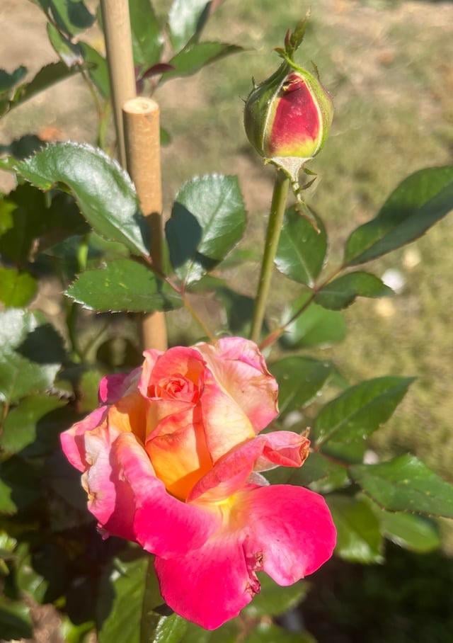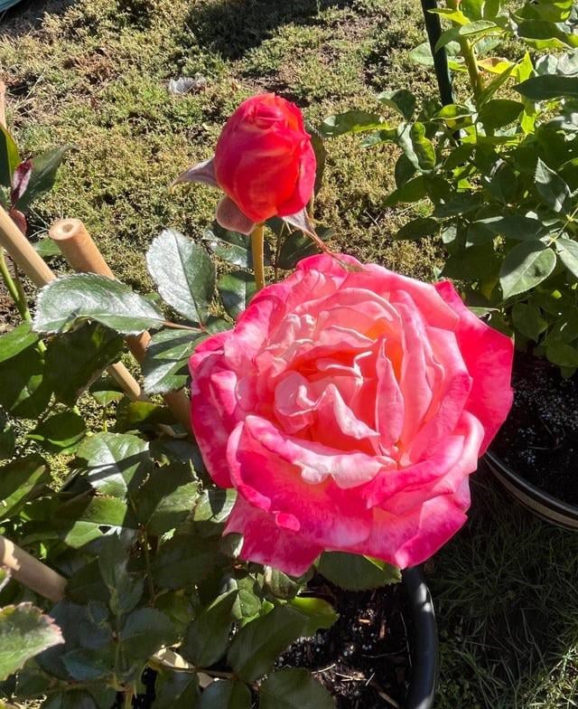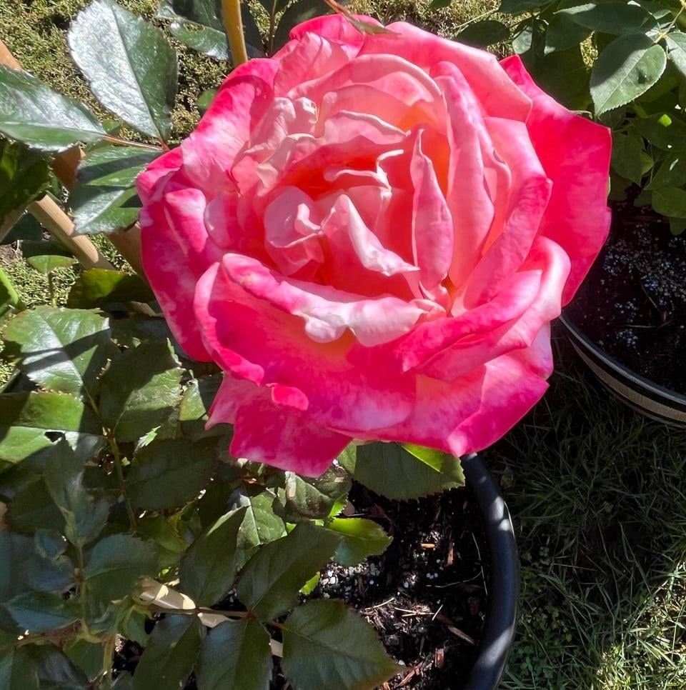 Enchanted Peace is a hybrid tea rose with an intense aroma, with large, dense and classic flowers, from pale yellow to orange, with their petals adorned with delicate pink edges. It blooms in sweps from spring to early autumn, and its exquisite flowers stand out on the lush foliage of bright dark green leaves. Compact and resistant to diseases, this shrub rose, upright and thick