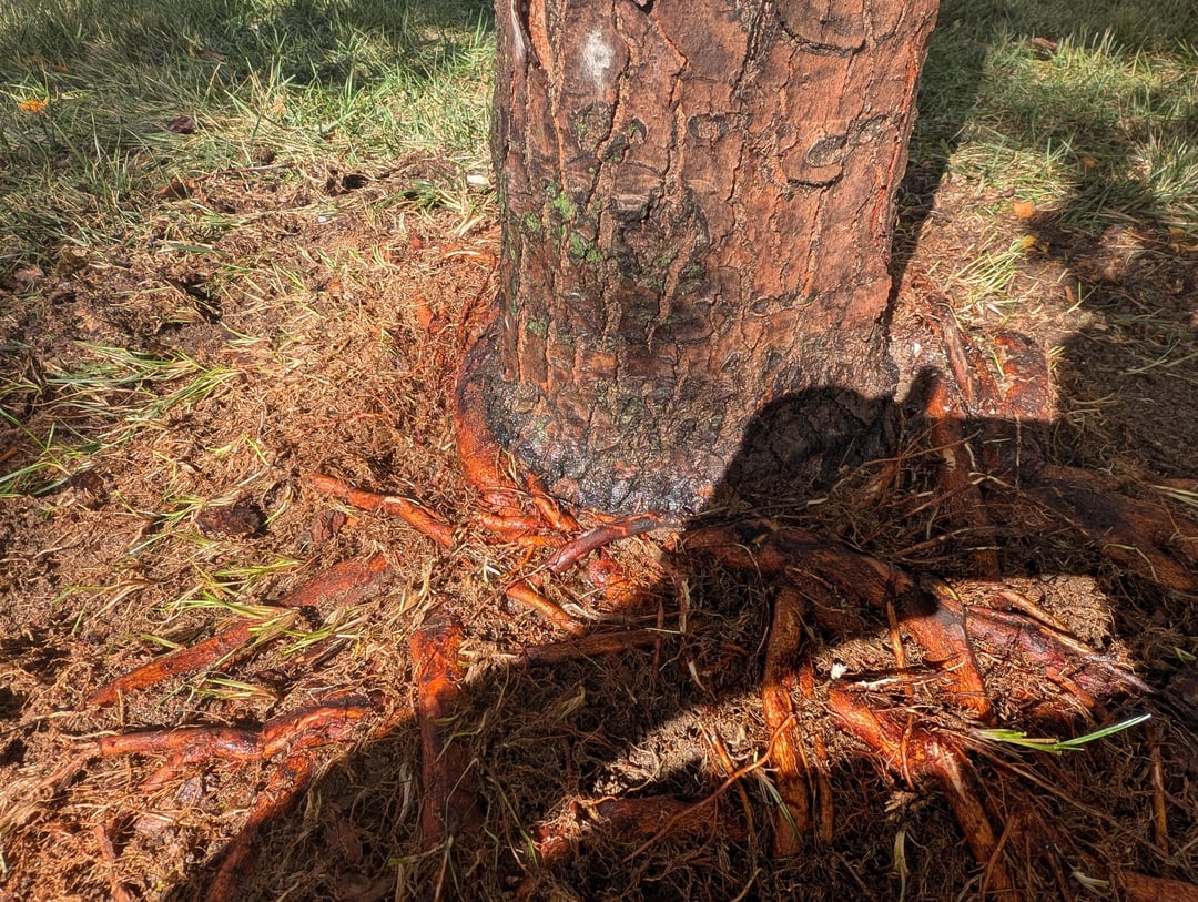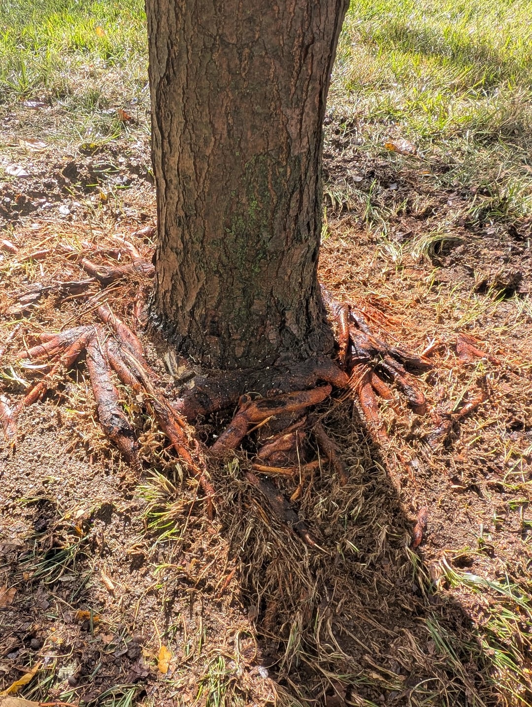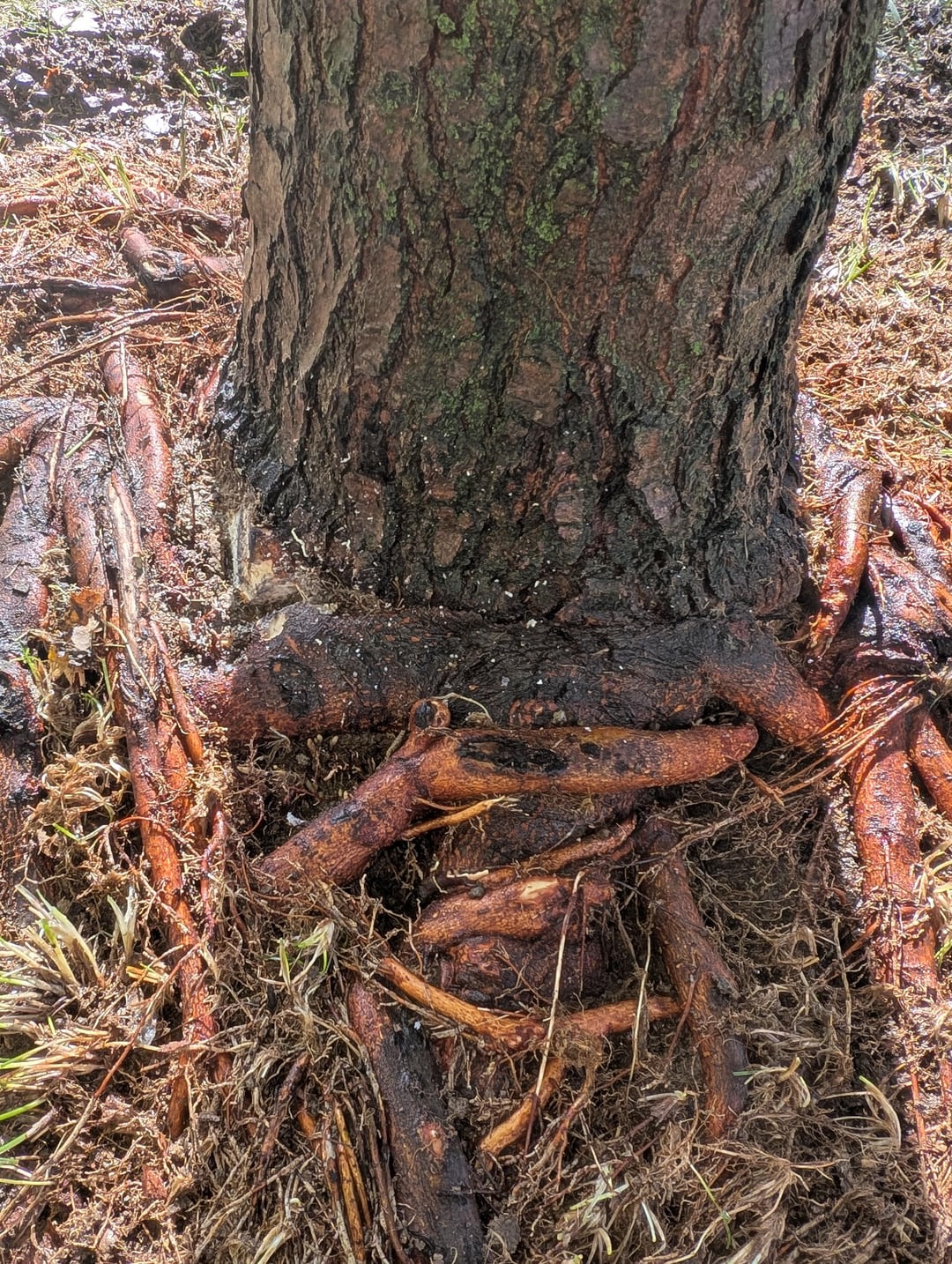 There are a lot of girdling roots for you to prune cleanly with hand pruners.
