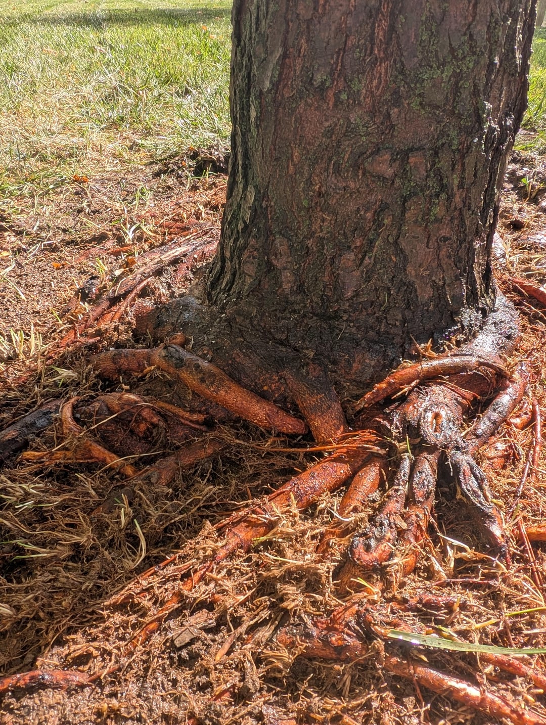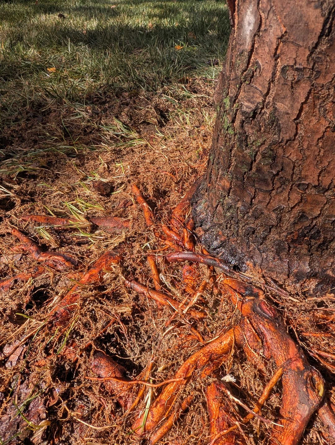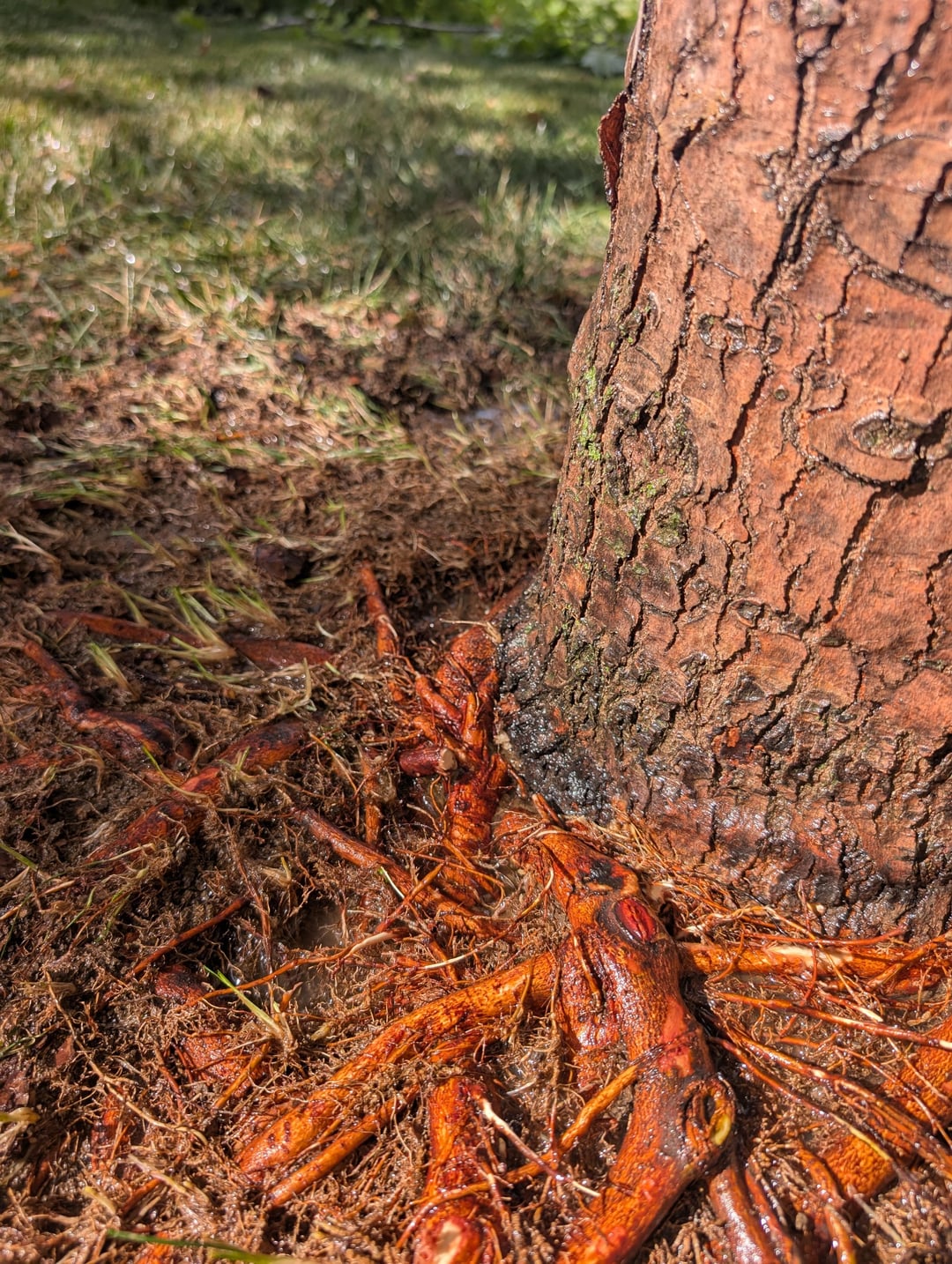 There are a lot of girdling roots for you to prune cleanly with hand pruners.