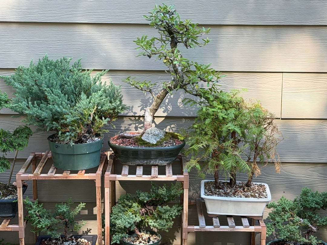 Looks great and that is quite a collection, especially for only 1 year. IMHO For the tree in pic 5, I think you should relocate the rock off to one side so the trunk/nebari is more visible. It currently blocks that view