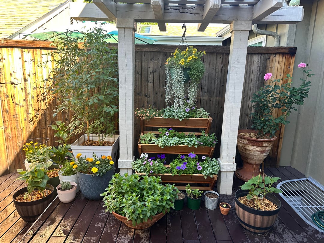 To fill the winter gap, set up a small grow-light shelf for herbs and microgreens, plant a bulb lasagna in your biggest pot for early spring blooms, and sketch a simple PVC hoop or plastic cold frame over that pergola corner to try cold hardy greens. I usually use [Gardenly](https://gardenly.app) to visualize my ideas. Maybe you could give that a try?