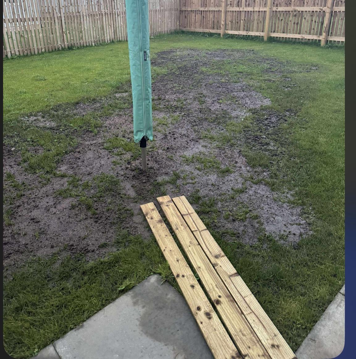 At the beginning of this year, we moved in to a new build property in central Scotland. As with most new developments in the UK, the back garden is mainly clay, and it just isn’t draining very well. This is a common moan. I levelled and de-stoned the garden in May, put some top soil down, and scattered some grass seed. To my amazement the grass grew incredibly well. The bare patches in the photo are where I have put some additional top soil down to help in the damp areas. This is the reason no grass is visible there.