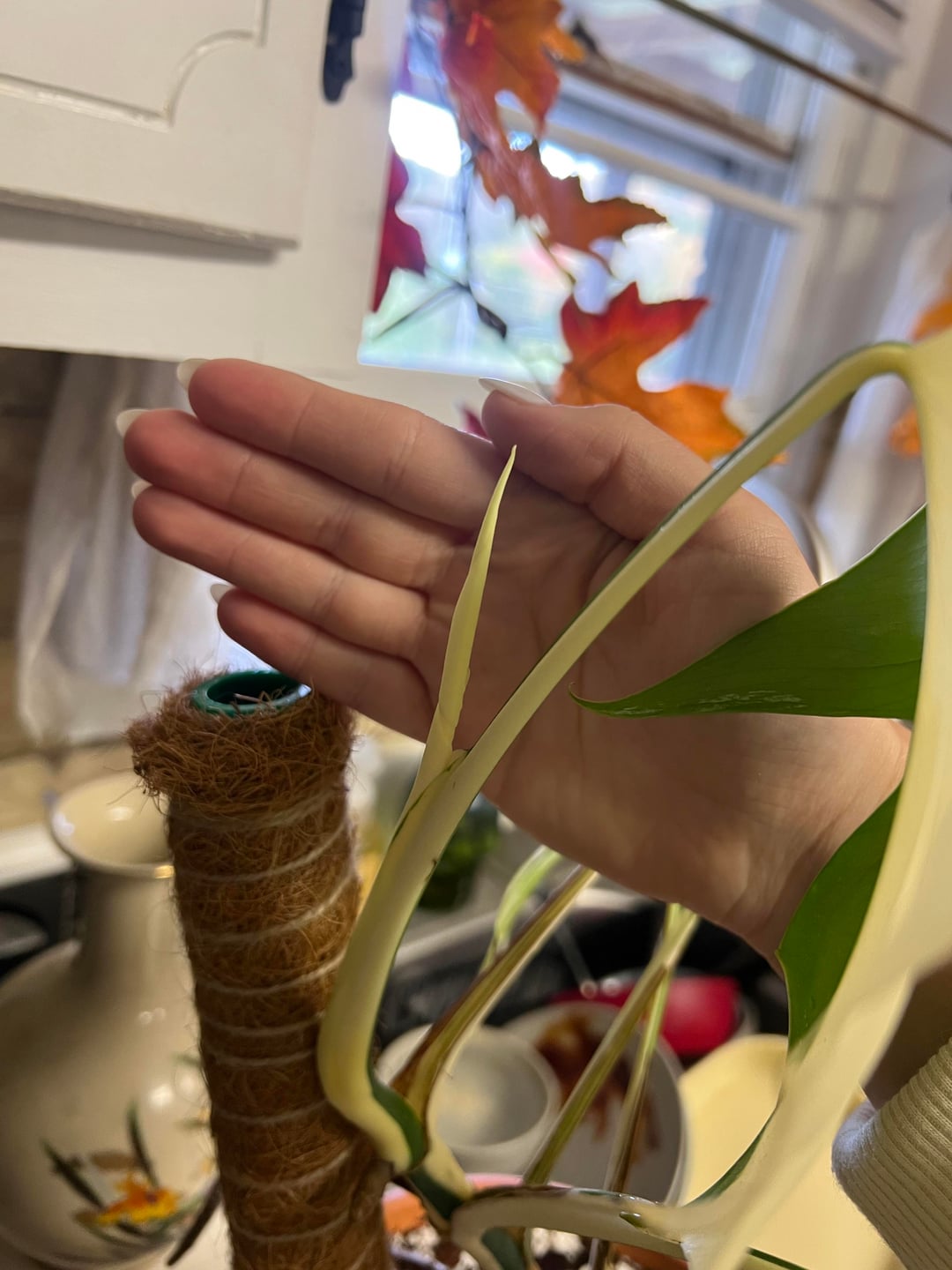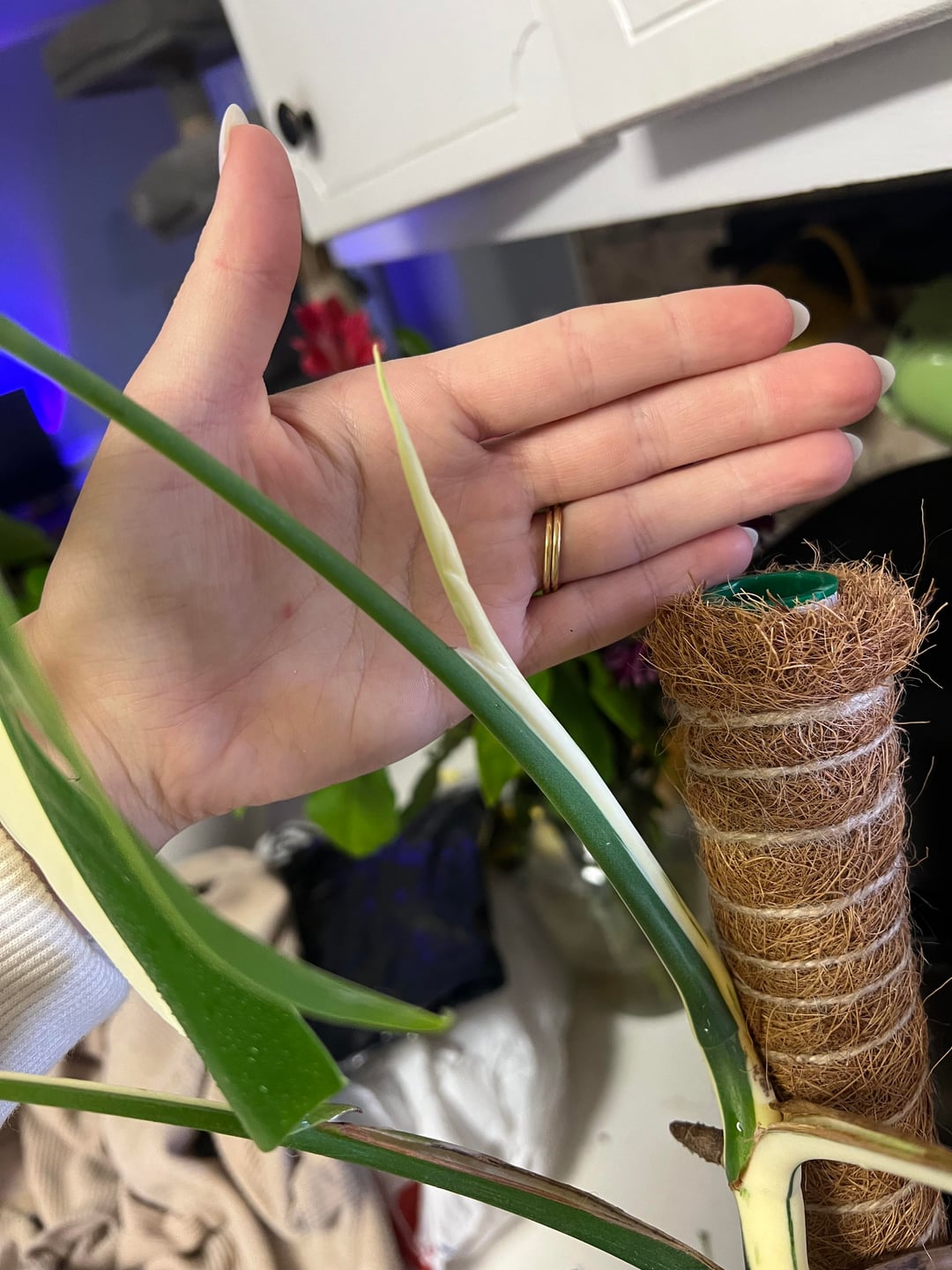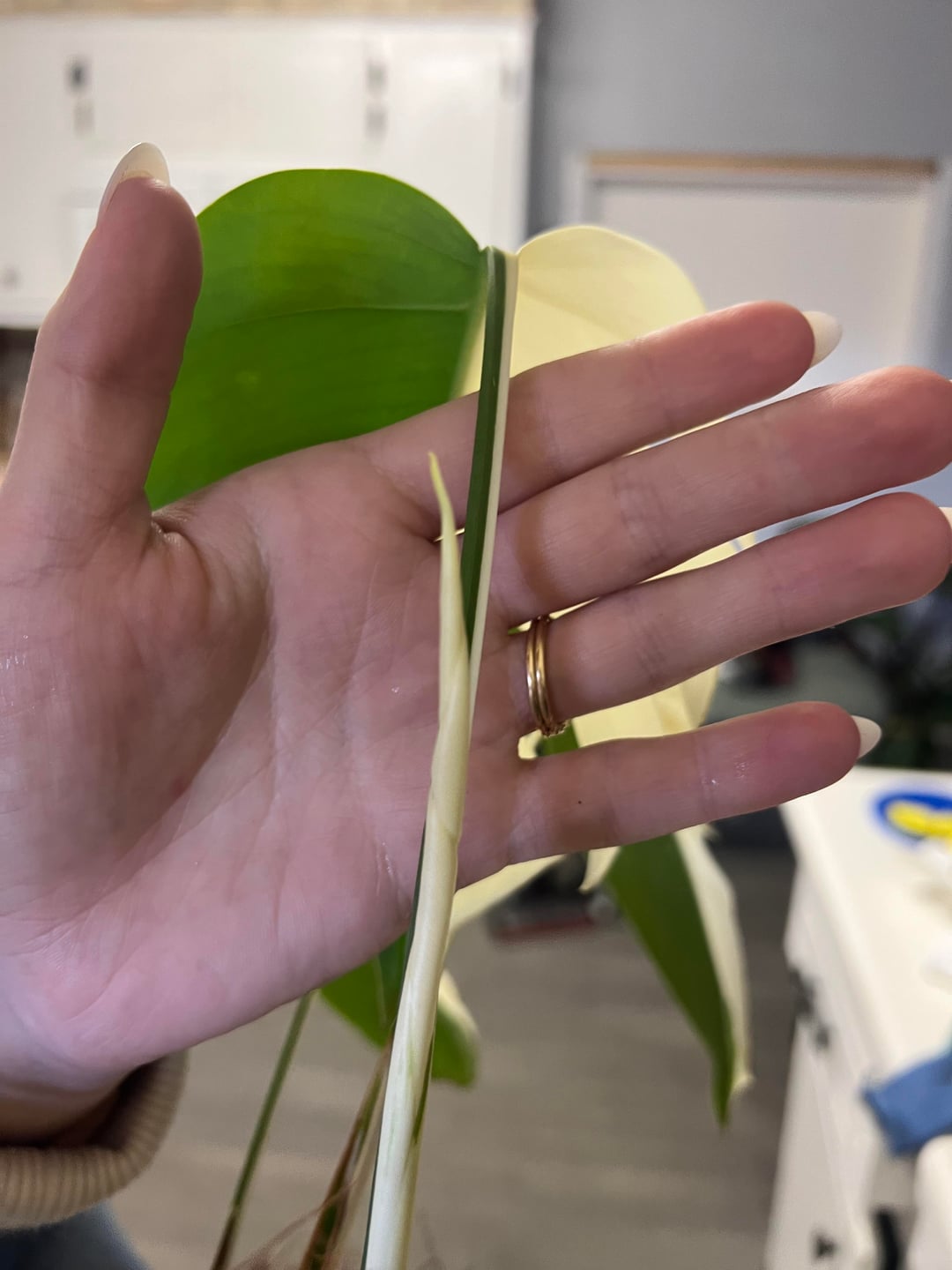 This is the first leaf that has emerged since I got this plant a few months ago. I’m excited and scared at the same time with seeing nothing but white. Pray she’s got some green somewhere in there. by JlNX2357 monstera 1 Comment NochesAticas 3 days ago Wtf this is perfection!!!! Sooo jealous