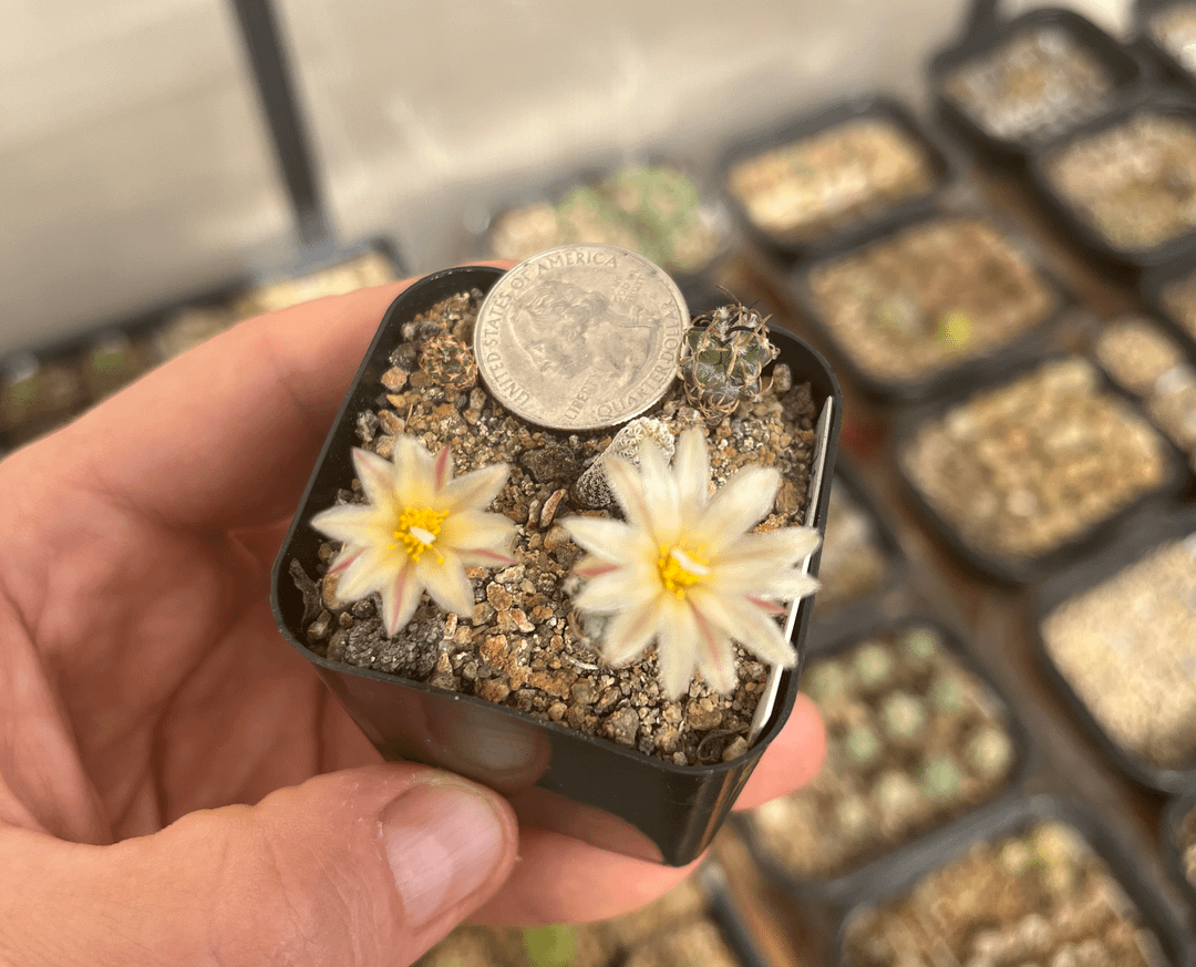 Turbinicarpus flaviflorus blooming for the first time by abrausman cacticactuscactuses 2 Comments skeletonkey707 1 week ago Those are small how old are they? MCCI1201 1 week ago Congrats!! They’re like tiny jewels in the dirt! 🤩