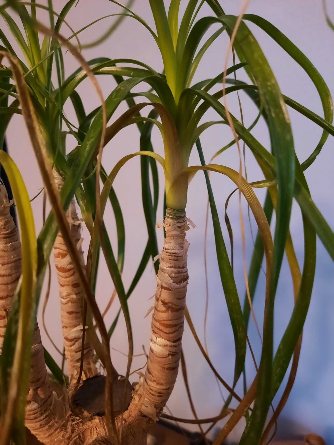 Ponytail palms can yellow from too much water or not enough water. kind of like most plants đ€Ł