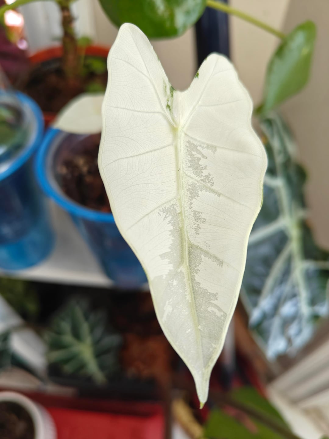 I let my thin leaf Alos (Odora, pink dragon, frydek and so on) get 3/4th of the way dry. Basically if my moisture meter is reading dry until the last couple inches of soil, I will fully saturate with water. I find if I leave it too late I will always get edema, and again if I water too frequently. To reduce the edema that’s affecting the leaves now, increase airflow with a fan.