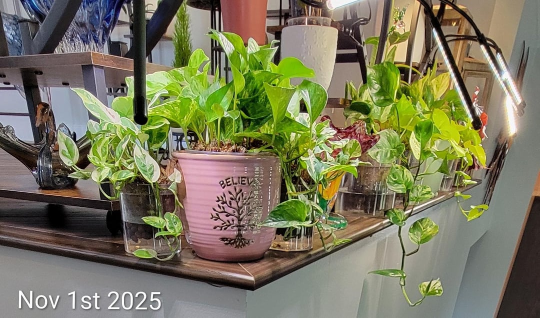 A couple months back I started building a plant room. I was looking for trailing plants when someone from another sub suggested pothos. Within a week I had broght home a good variety and now know why people love them…they're gorgeous, super easy to care for and grow crazy fast… I'm loving these guys!!