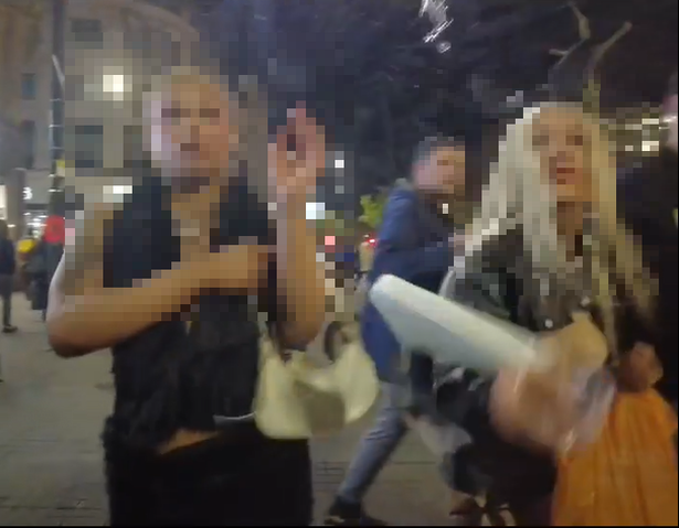 His footage shows the person, who was holding a pint and was wearing ‘bunny ears’, appearing to be upset at an earlier unseen unseen incident. They can be heard to say: “I’m real life mad. I need to f**k him up.”