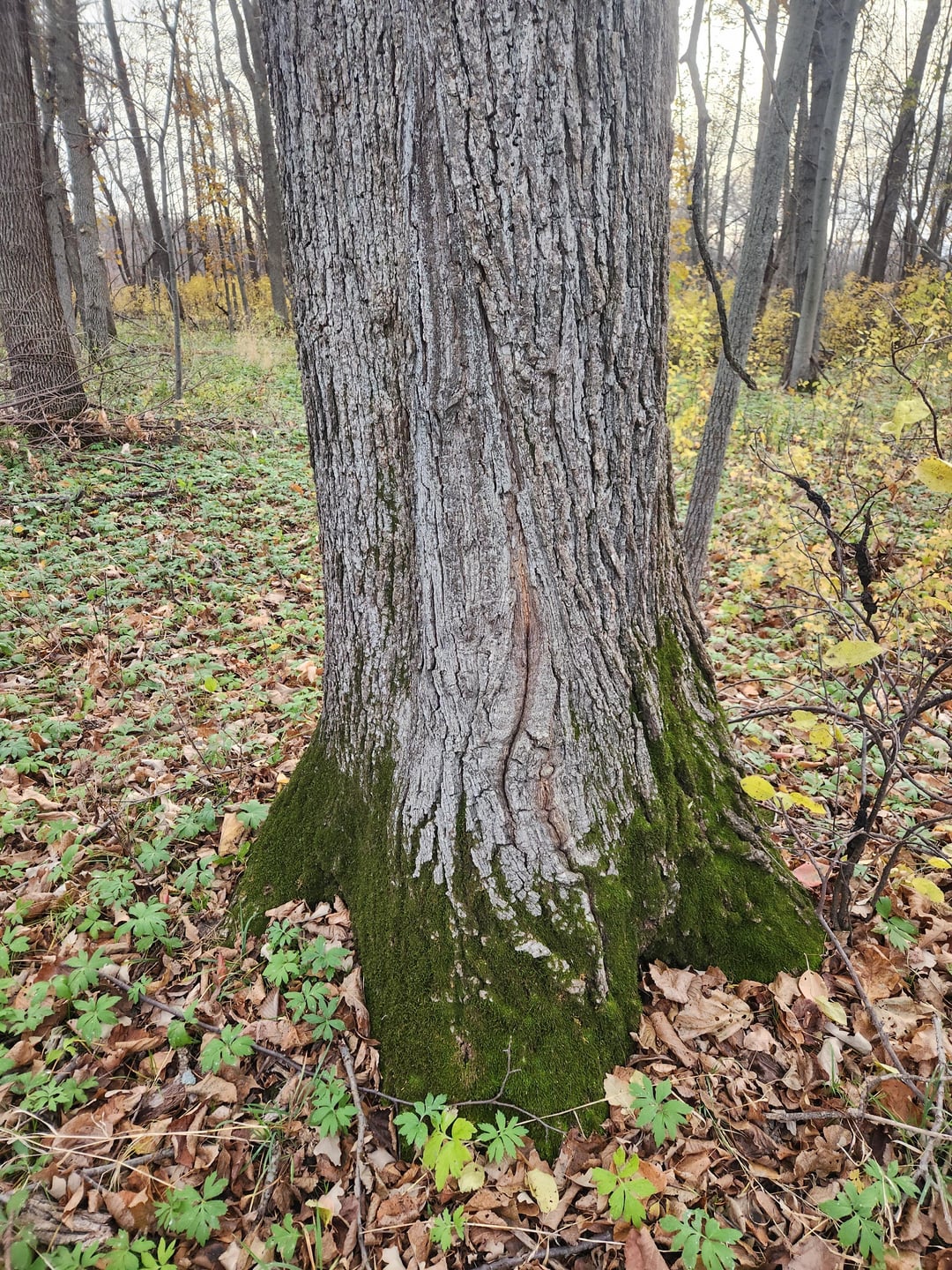 Ok, with that out of the way, back to the oaks! The traits exhibited by these trees are consistent – and the habitat, a wet-mesic terrace forest above an active floodplain, is the perfect niche for Swamp White Oak. These potential intermediates are regenerating very well. I am honestly leaning towards the possibility that the large individual Bur Oak may be introgressed. Bur Oak is completely absent from this entire terrace, only becoming abundant on upslope sites above the floodplain and terraces. Closest stand of Bur Oak is a half mile west in upslope Oak-Aspen woodland.