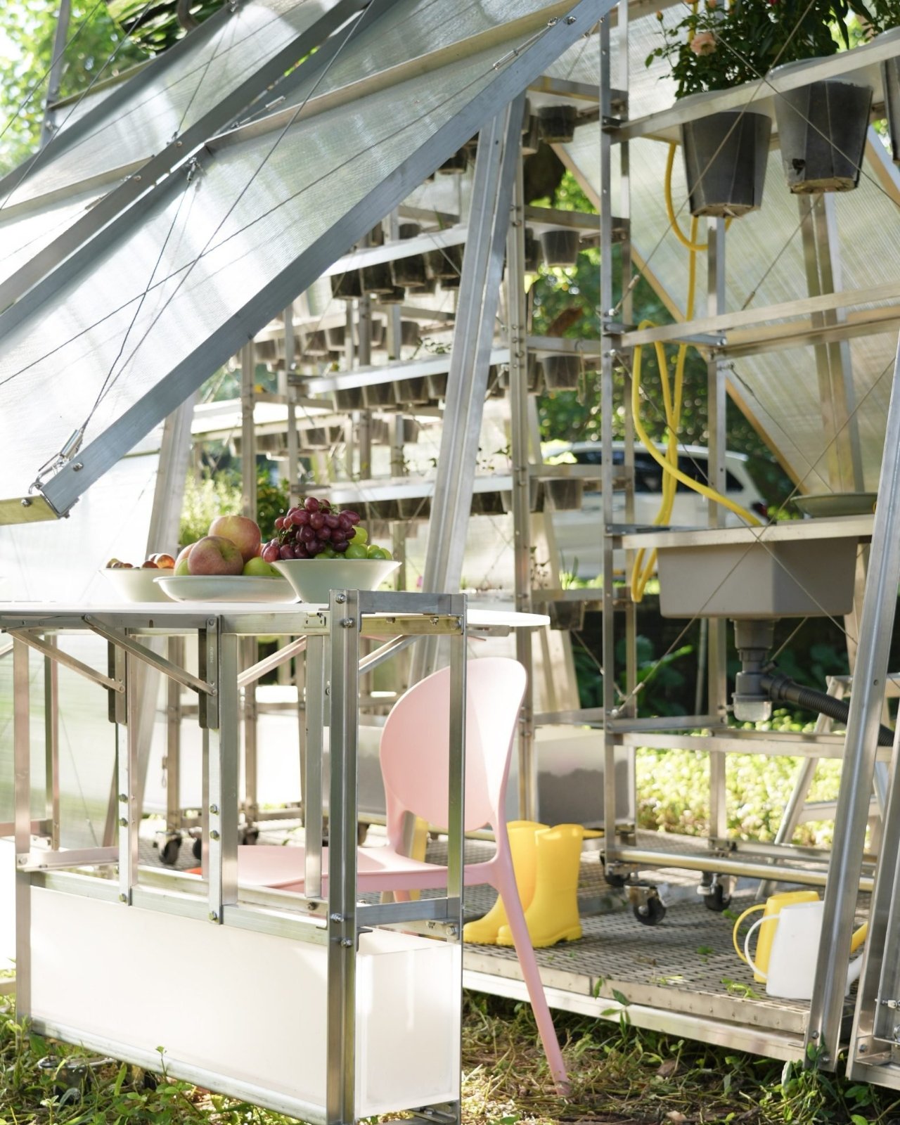 The project is called “Your Greenhouse Is Your Kitchen Is Your Living Room,” and yes, that title is doing exactly what it promises. This isn’t just a clever name. It’s a modular pavilion that literally transforms from a functioning greenhouse into an open pavilion for community gatherings, and it does so in the most satisfying way possible.