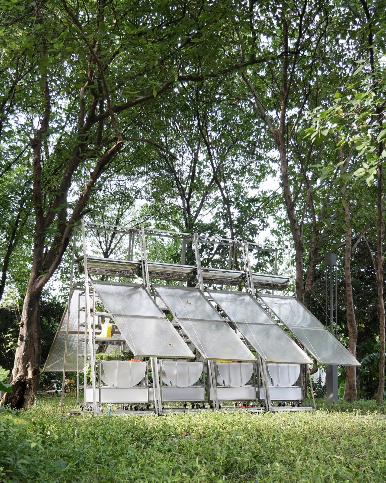 The technical details are pretty clever too. Those polycarbonate sheets aren’t just randomly placed. The designers carefully positioned gaps between the panels to allow for passive cooling, which is essential in Guangzhou’s subtropical climate. Nobody wants to be stuck in a sweltering greenhouse when they’re trying to tend their herbs or host a gathering. Inside, metal shelving racks hold the vegetables and herbs, creating a practical growing system that doesn’t sacrifice aesthetics. The whole structure is lightweight and modular, which means it can be adapted, moved, or reconfigured based on what the community needs.