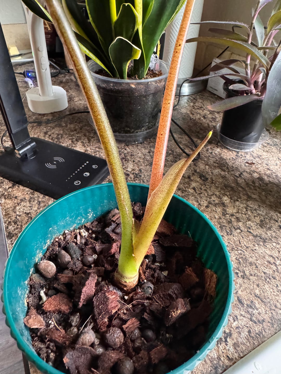 She is on my kitchen counter so it could be splash from something I guess. I’m a little concerned. I also noticed it looks like there’s a third leaf coming up and I am excited about that and the fact that I’ve been able to keep her alive and growing for over 6 months, after hearing such horror stories about their fussiness and fragility.