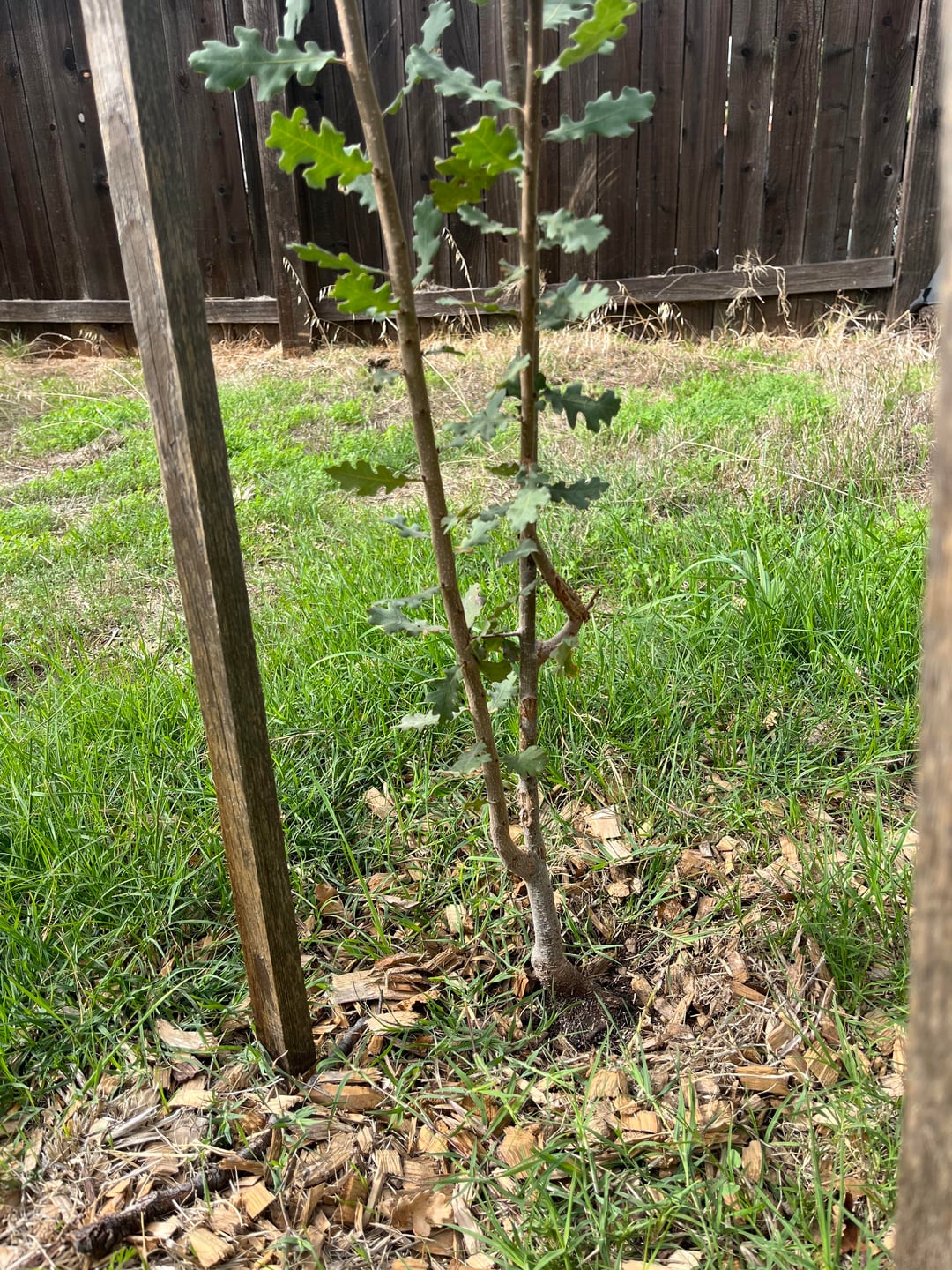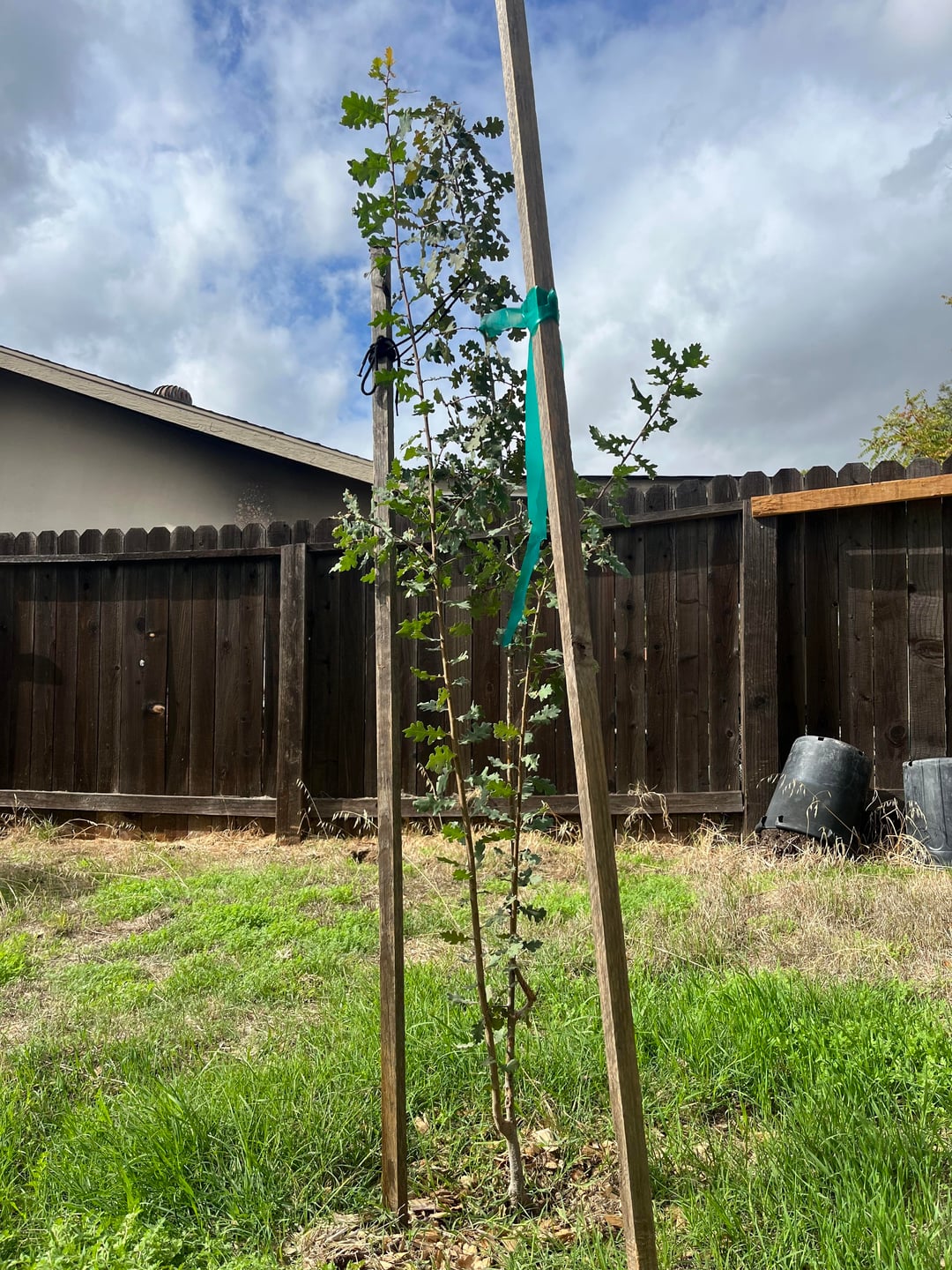 I’d remove one of those limbs, keeping the straighter/stronger one. Ideally, I would cut the unwanted limb in half now, and then remove it altogether the following year…this avoids putting too much stress on the tree by removing half of its canopy in a single year. But at this age, even completely removing one of the shoots won’t be too severe on the tree.