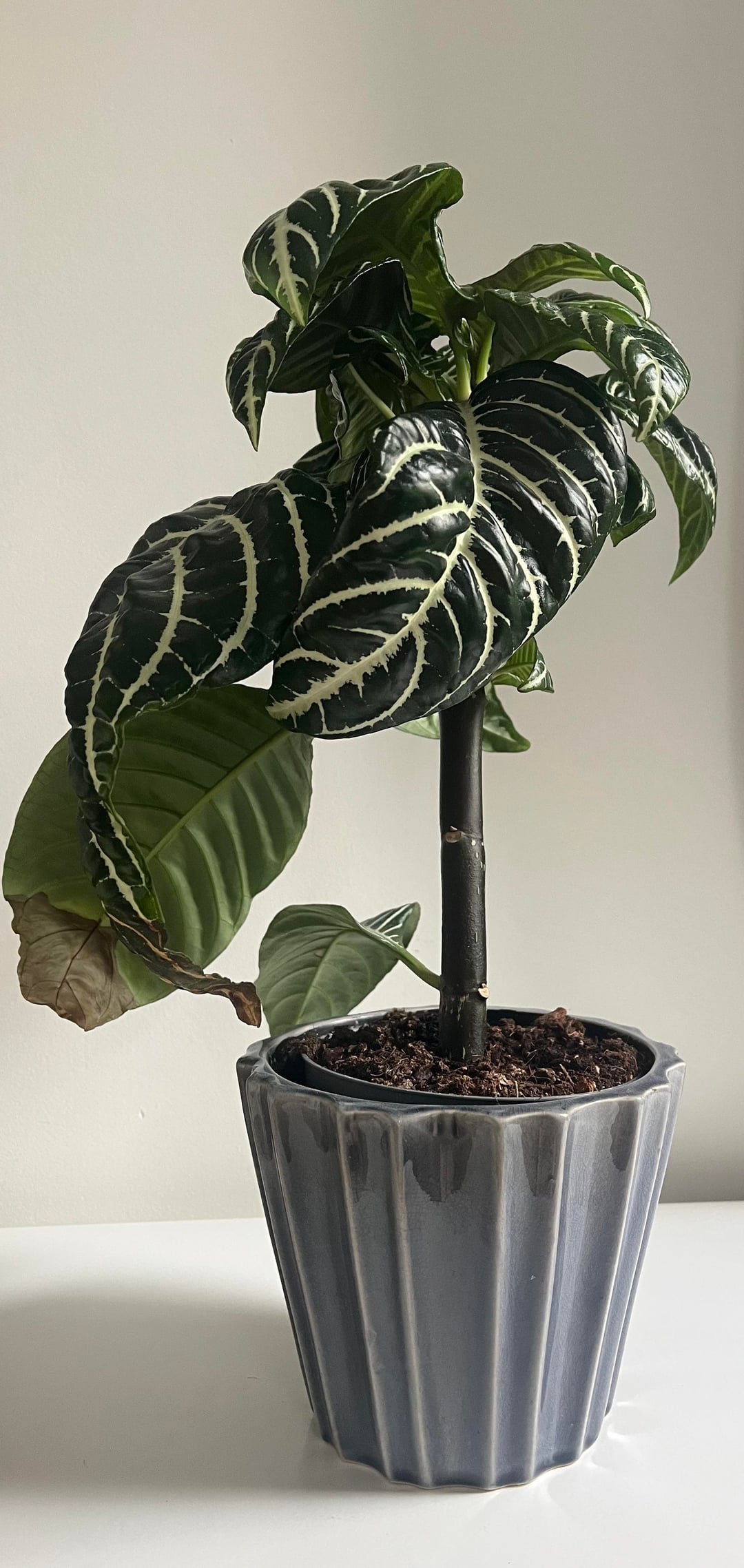 It’s in the dinner table next to a south facing window. We don’t get a lot of sun right now (Netherlands, winter) but in the summer it’s definitely 10+hrs and I might move it again to a bit further away from the window). It’s still in the origins potting soil. I water when the ground is dry (or later).