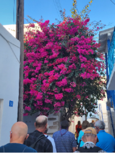 And I’ve had to readjust to the plants, too.  Olive trees have been replaced by apples, oleander by late chrysanthemums, and hot pink bougainvillea (photo above, in Paros, Greece) by the bright orangey-red leaves of sugar maples.  Different, but well loved.  One unfortunate similarity: it turns out that Tree of Heaven, ailanthus altissima, is as much of a hated invasive there as it is here.