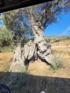 But in Greece, where every available square foot of arable land, right up to the very edges of the airport runways, is planted with olives, patience is forced upon the grower, because olive trees aren’t mature enough to produce fruit until they’re sixty years old.  They’ll make up for it eventually–we saw trees still producing after three thousand years (photo above)– but anyone planting an olive knows it’s not for today or even next year, but for posterity.