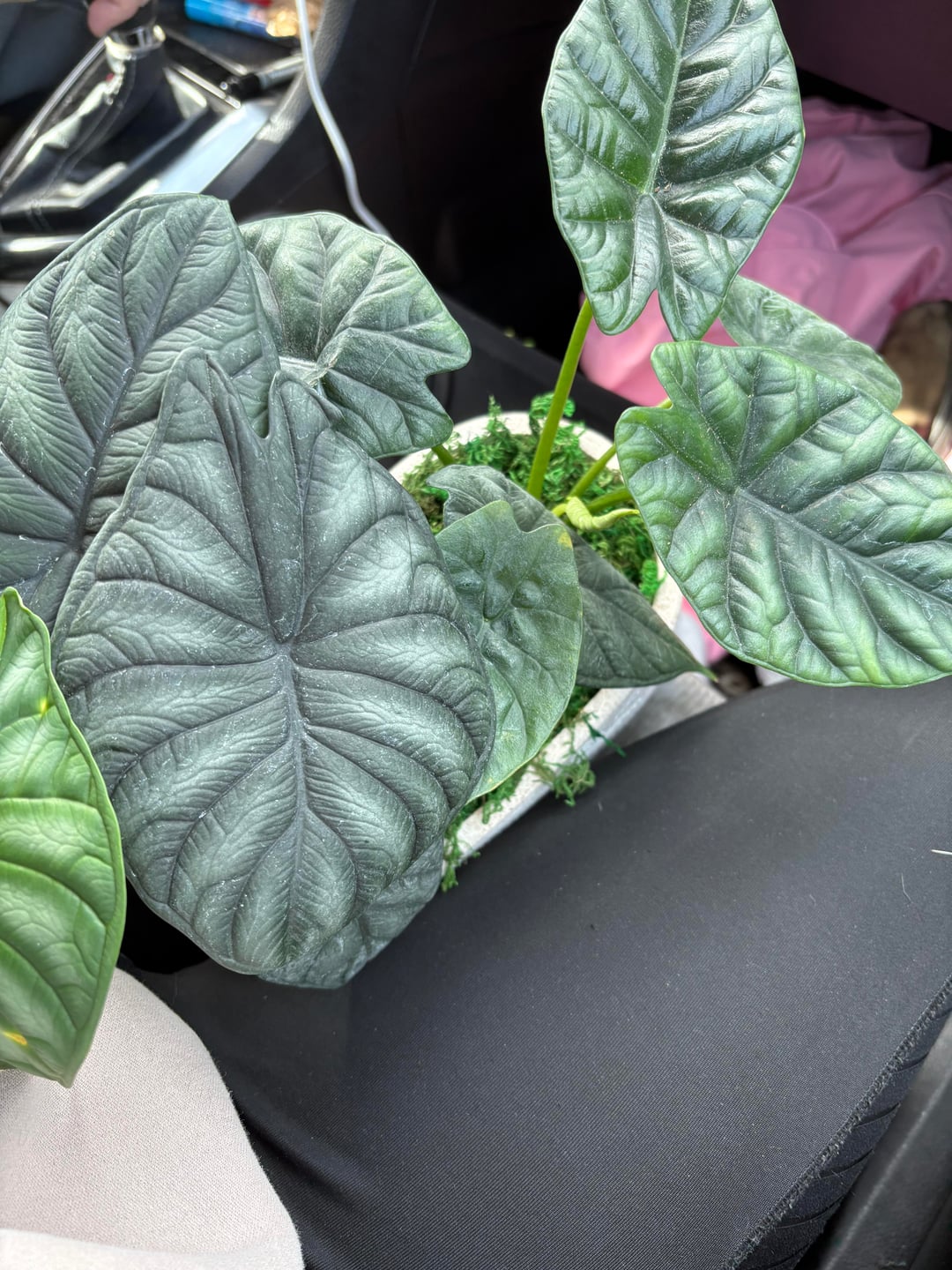 Top photo is alocasia Sinuata and bottom photo is dragon scale