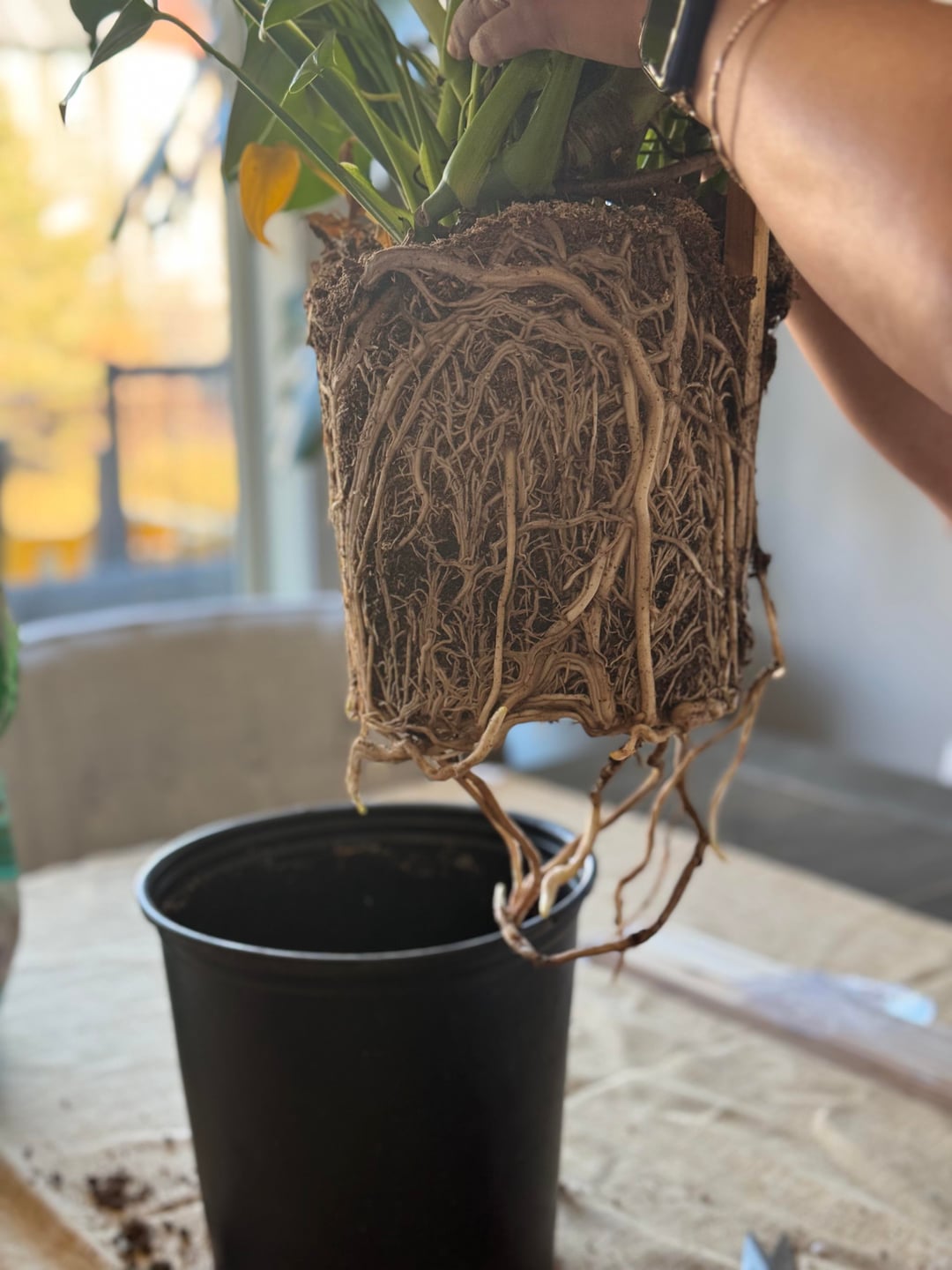 Before in her old nursery pot, her root system, and her new look 🥰 by Queenlishers monstera 1 Comment man11ak 7 hours ago She’s definitely not solo.