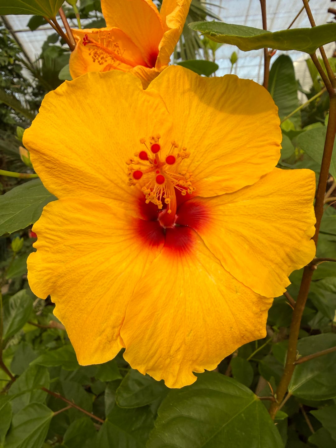 Red is the most common hibiscus color, so I like the yellow! So much more interesting with the pop of red in the middle!