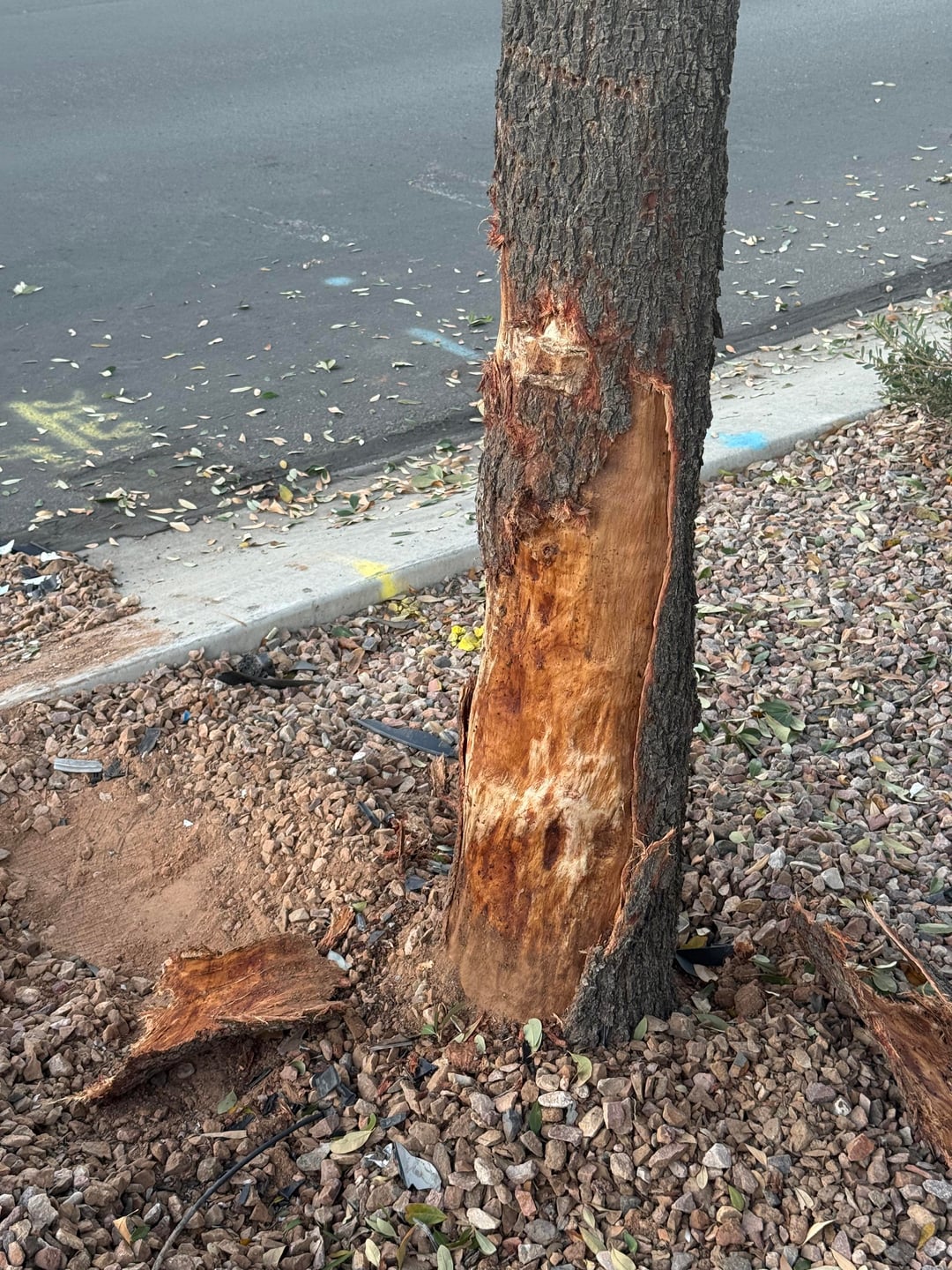 Tree was planted in 2014. Took the full impact of a sedan at 35mph. Seems to be stable still, but it has tilted and moved several inches from where it was.