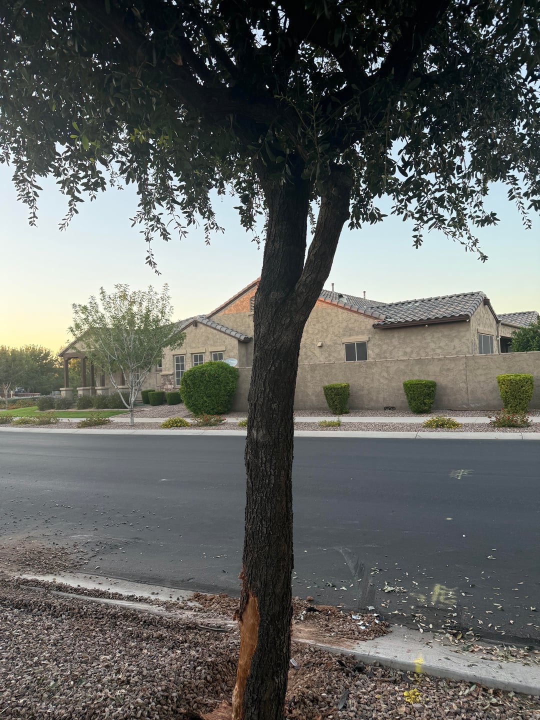 This tree might survive…it has about half of its trunk still intact. However, that open wound will most likely begin to decay long before the tree can close it off. Considering its location next to the road, this could become a high risk tree in a few years.