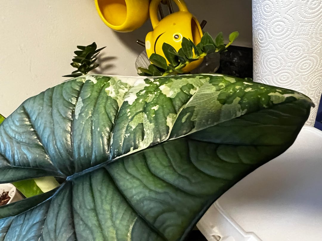 Just stopped at Home Depot and they put new plants out, a lot of these Alocasias (not sure what kind because of the fake names they have on the tags) but this one is a variegated albo right ?? by Moxie_Rotten alocasia 4 Comments Normal-Ratio-4570 2 days ago No it’s just a normal alocasia…. You can send it to me🤫🫣 nah but foreal! Cool ass find!!! Comedian_Brief 2 days ago It looks variegated. Great find! Make sure to give it plenty of light to encourage that. Ok-Connection7818 1 day ago Respectfully, i hate you. I found one 2 yrs ago, killed it right away. AsukaWasHereToo 1 day ago Nice find! Variegated ‘Bisma’, keep an eye to see if that pattern stabilizes/improves.