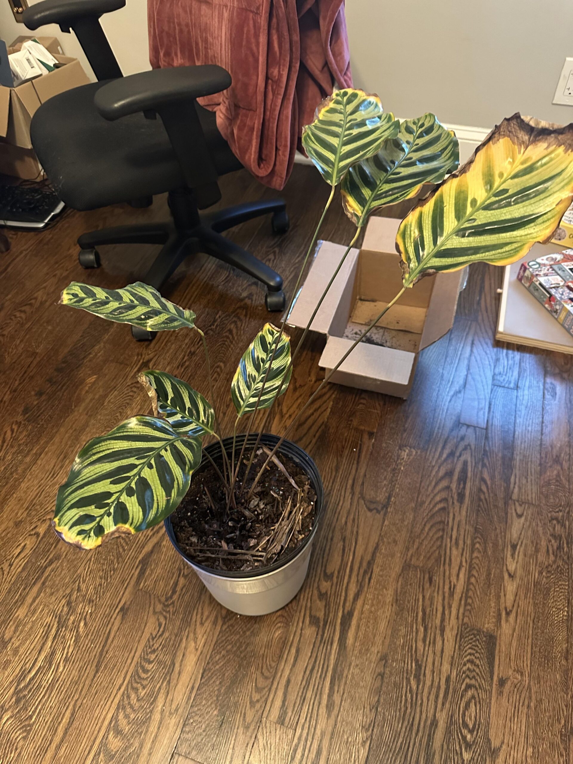 Aside from that, it looks like there is some plant etiolation going on where your stems are super elongated because the plant is reaching for more light. I know a lot of sources say calathea like indirect light, and this is somewhat true because it might get fried if you sit it in the middle of a hot sun, but they actually enjoy more light than people think. I have mine under a grow light and it is thriving— perhaps try that if you don’t have a place close to or next to a window.