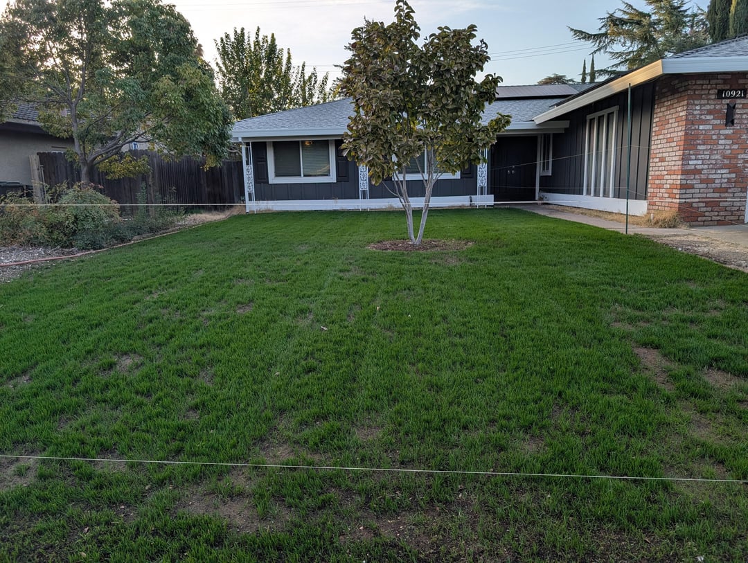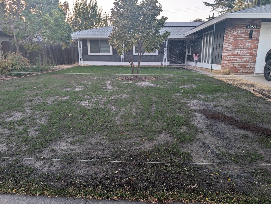 Half of my lawn randomly died. It was an irrigation issue and I had to dig trenches and redo basically the full sprinkler layout. When it grew back, it was all patchy and full of weeds. I ultimately decided I didn't want Bermuda due to issues with aggressive spreading and overgrowth. Sprayed 2 rounds of glyphosate, scalped, scarified, aerated, topdressed, added milorganite, Resilience II TTTF, and mesotrione. Watered like crazy and the seed did the rest! Huge thanks to this group! Now I just need to find the perfect broom to start sweeping my new lawn. Northern CA, zone 9b.