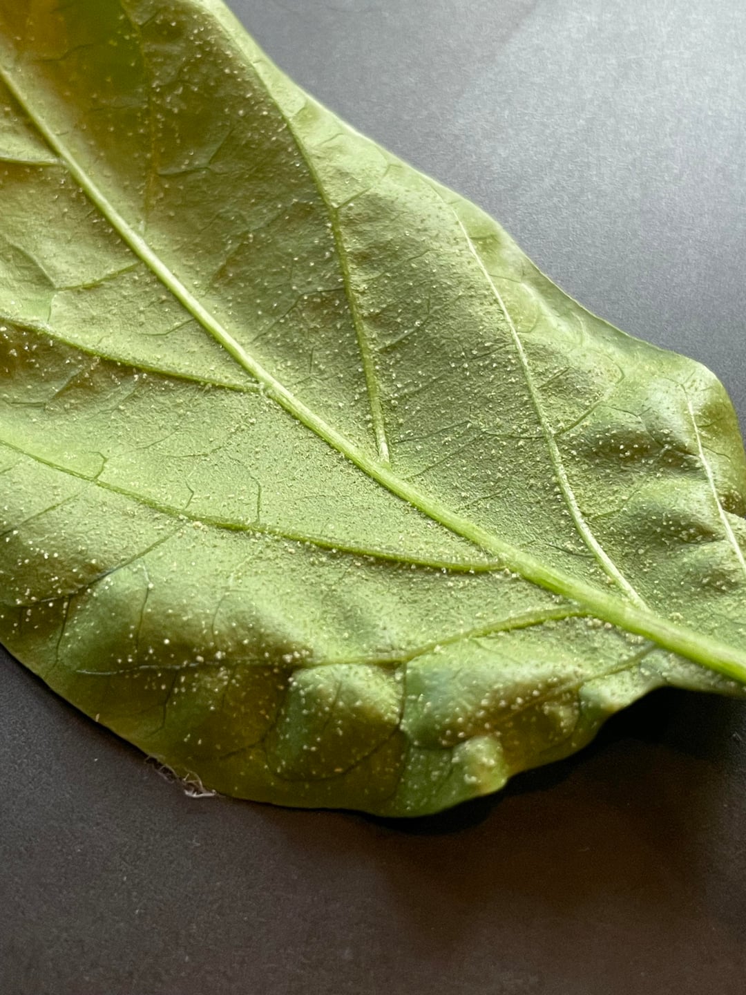 My Jalapeño has started producing fruit and it’s still building on some flowers. Today I checked the plant and noticed that some flowers fell off, the whole bud. When I checked the leaves, I saw this powdery stuff on the underside of most leaves from the middle canopy.