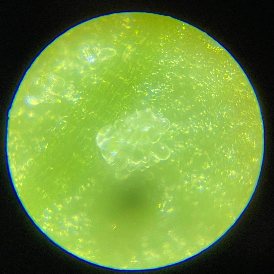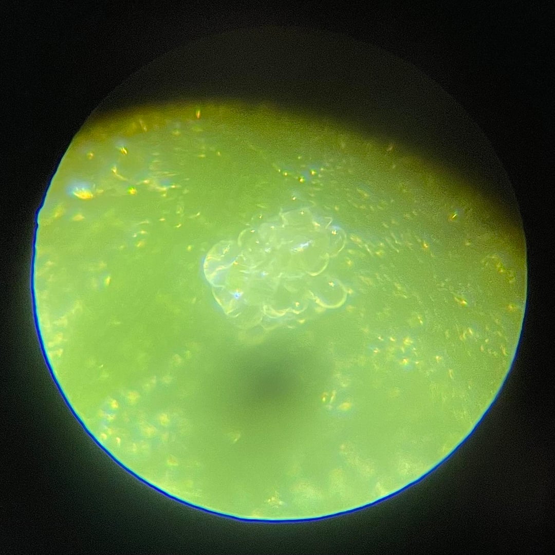 I have a small microscope, so I got some details. Hope this helps a little bit determining what this stuff is.