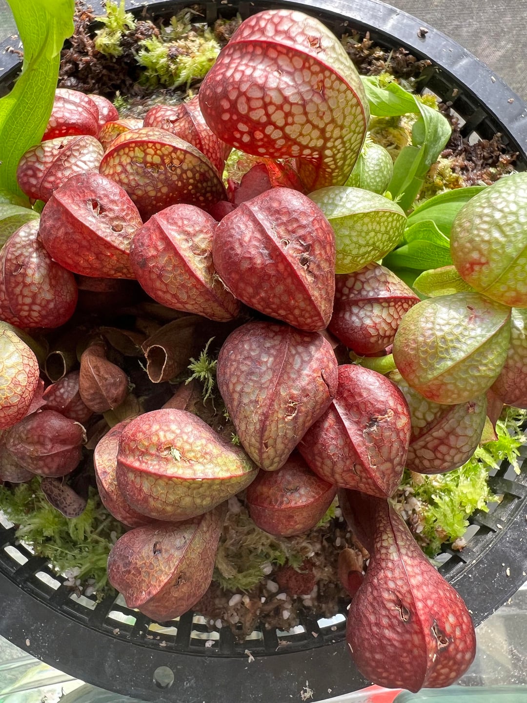Juveniles usually grow clusters of small highly twisted traps, usually with intense coloration. once they become adults they produce a couple large traps in spring, then again in late summer. In between those bursts they grow clusters of these tiny traps again, I have mature clusters that grow like two huge 30” traps and then grow a dozen little 3” ones the rest of the season.