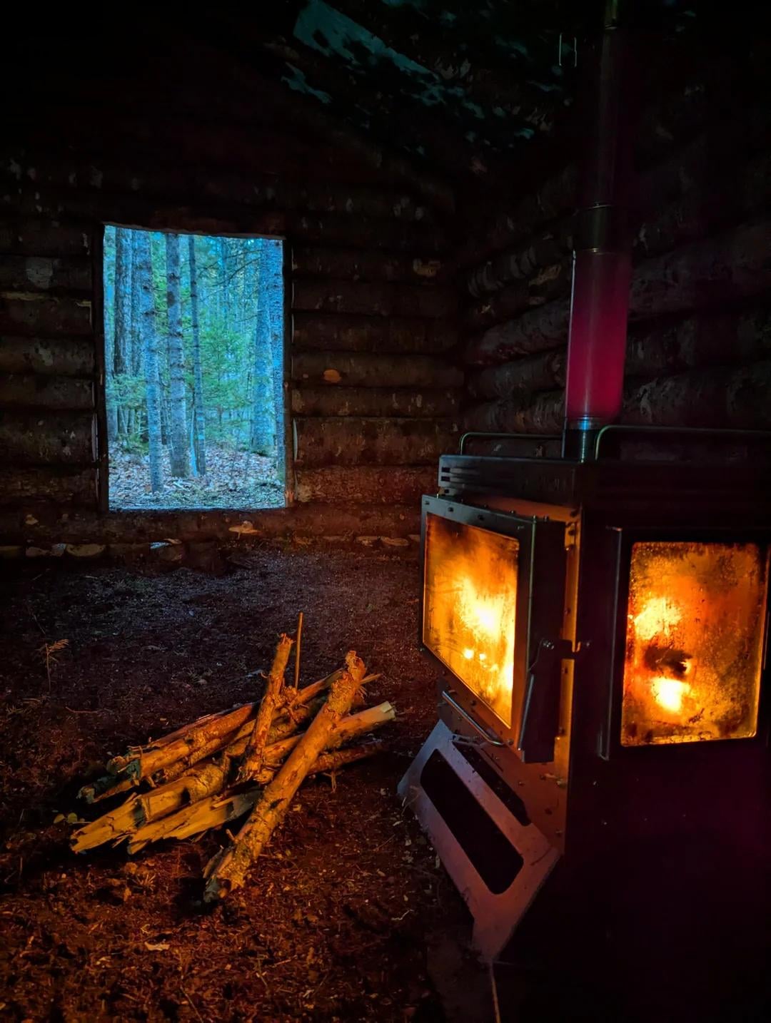 I dig it. I can tell it is true DYI. Looks square and solid— what one guy can actually get done in one season. With a proper corrugated metal roof it also looks like heavy rain and snow can be diverted properly. The stove is the lifesaver. There are lots of chinks/gaps in a rough construction like that, so drafts and the bitter cold are coming in. As well as mosquitoes and other insects through the warmer months. The foundation doesn’t appear to be of stone so it is going to rot and be vulnerable to vermin. Looks like you can barricade that door if you need to and that’s good. on a dark cold fall or winter weekend I would love knowing that it is there… solid shelter from the wind, the snow, the bears, vagrants, etc.. an escape. In the warmer months of the humidity, insects, and frequent damp, somewhat less comfortable. The nice thing is that overtime, you can refine until you find your sweet spot.
