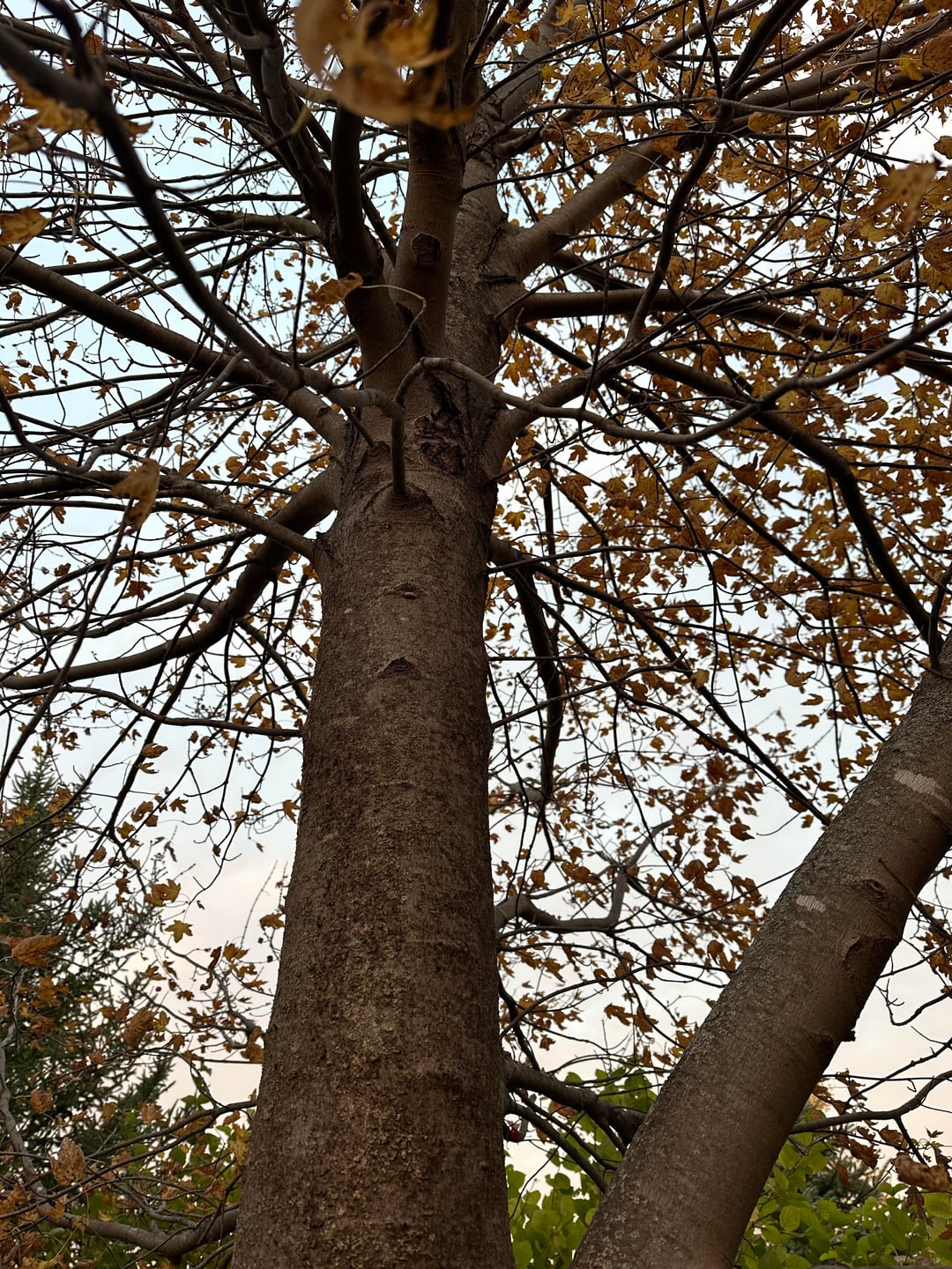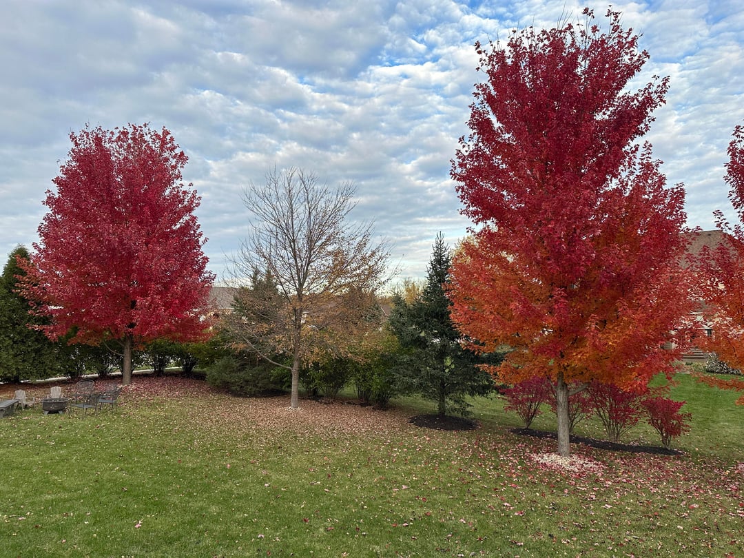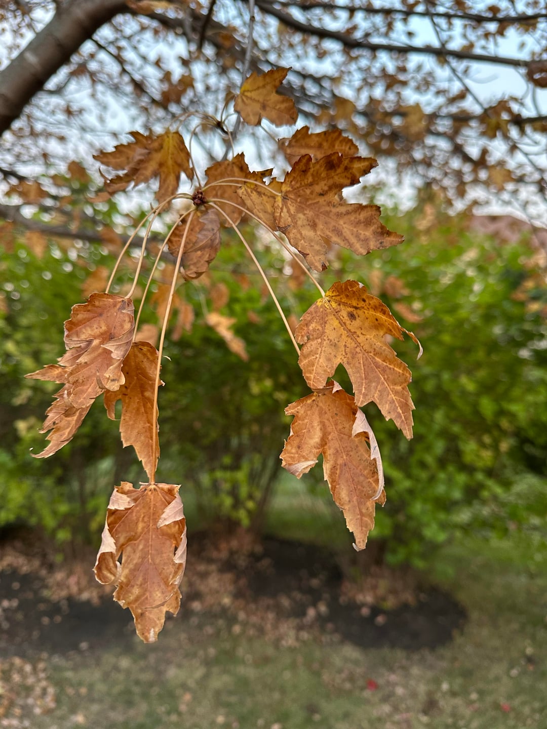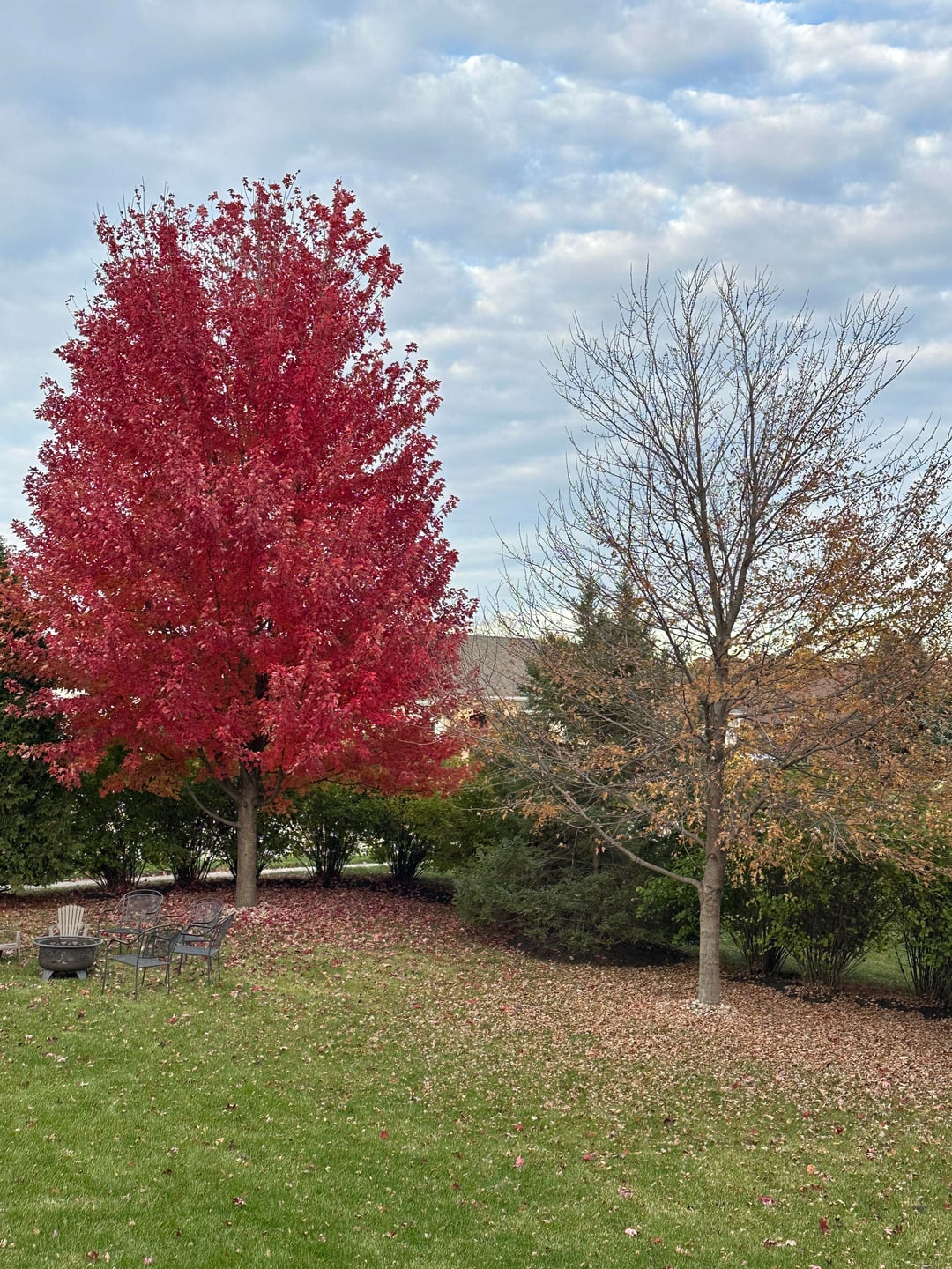 Can someone help me identify what’s going on with my one maple tree. The leaves turned yellow and dropped really quick while the others have turned beautiful colors. I don’t recall if it was looking sparse during the summer. I think I would have noticed. Is it save-able?
