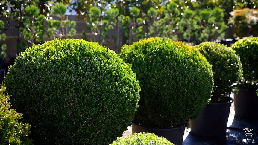 Buxus balls are trending at the moment, grown in groups or lines. The nursery stocks four types of Buxus because it is such a reliable plant that is tough and durable in a range of cool and warm climates, has few pest problems, and tolerates all conditions, including dry periods. “The worst thing you can do is overwater it,” Scott says.