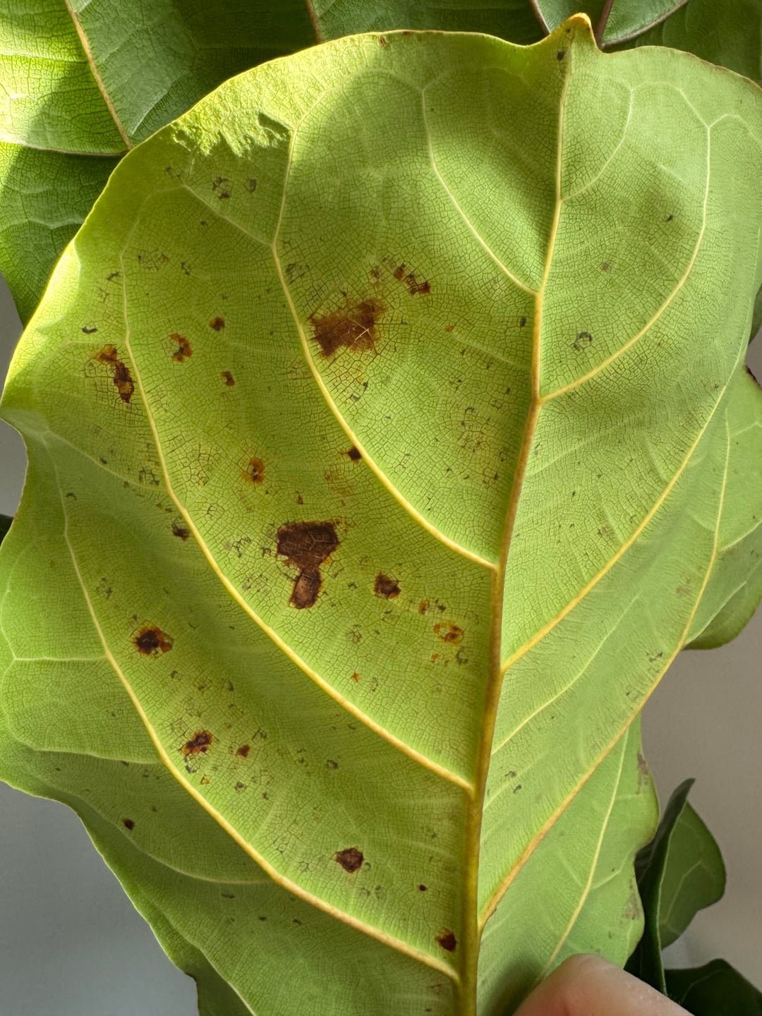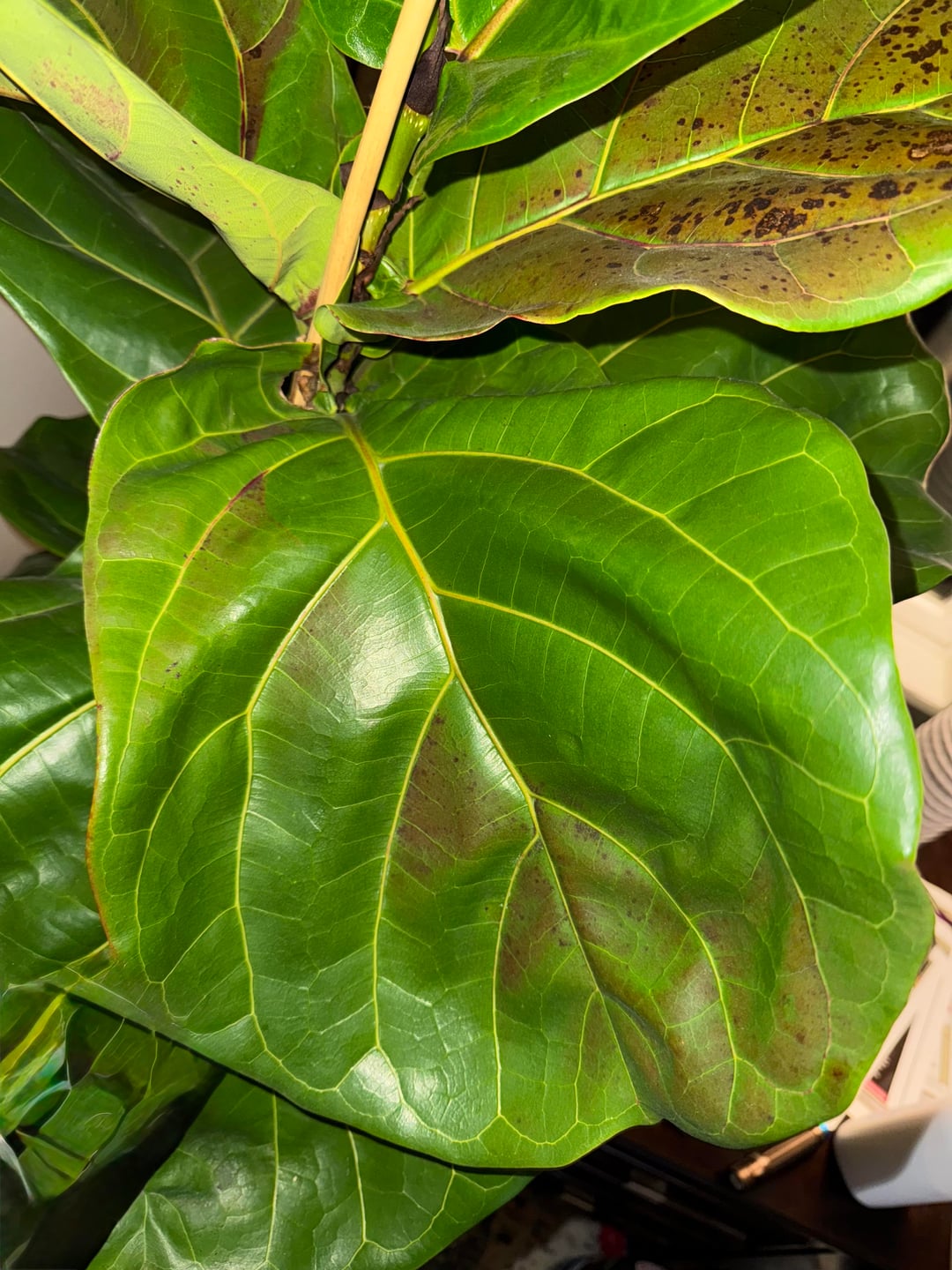 So brown spots on FLFs can be due to inconsistent watering. With the more severe leaves, not sure. Something has to change, so I would start by repotting it with fresh soil. I use the FLF soil from rePotme.
