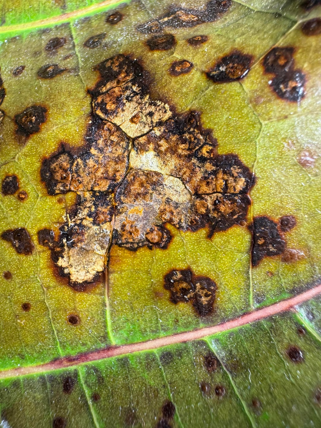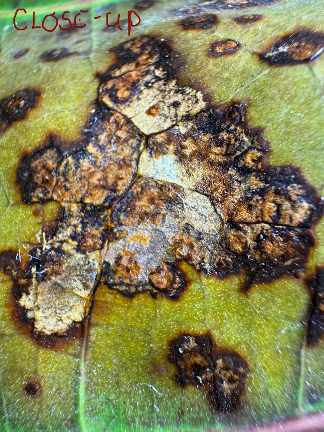 You can take the damaged leaf to your local extension station to have a plant pathologist diagnose the issue, if you can’t get a consistent answer from the internet.