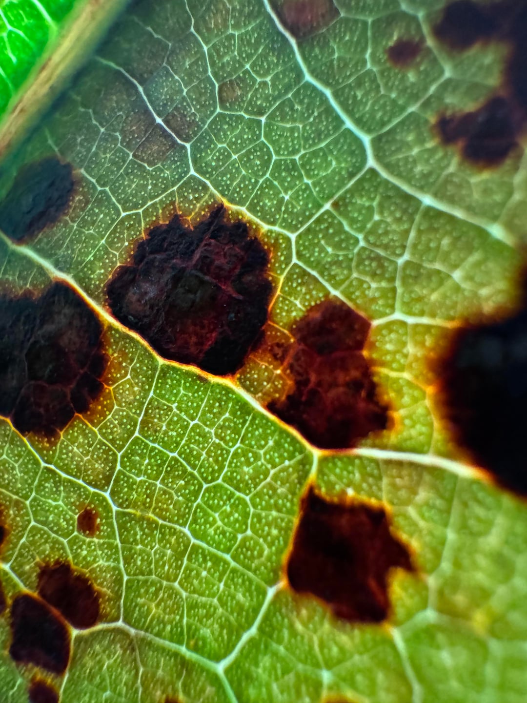 Iv narrowed it down to 1 of 3 things but I’m not sure what it is. 1) Edema: Although I don’t think it’s this, but it’s possible I guess. 2) Spider mites. 3) Mold “Rust”.