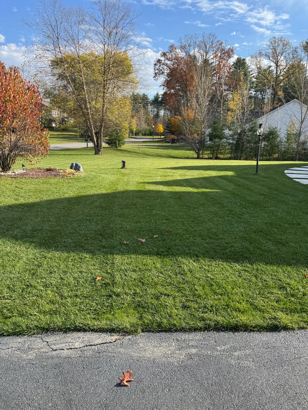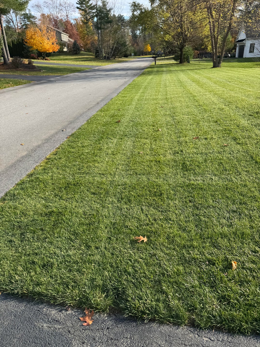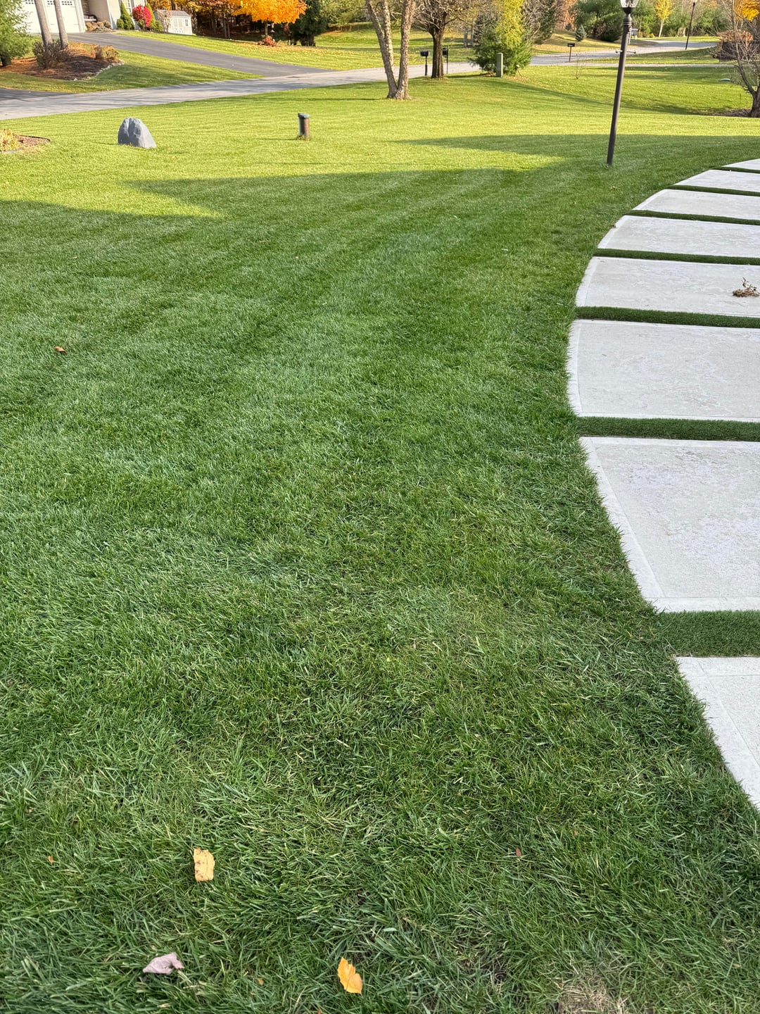 This is after a full fall rehab: leveled, overseeded, and fed with ammonium sulfate + starter fertilizer + Tenacity for control.