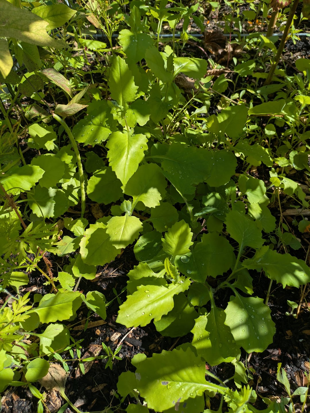 These are radishes, Cherry Belle, snapshot taken just now. From my garden. They are about the same size as your plants. The radish leaves have smoother margins. Not as much notching.