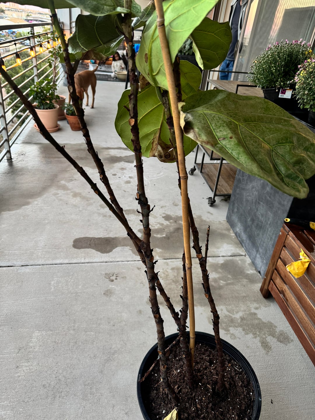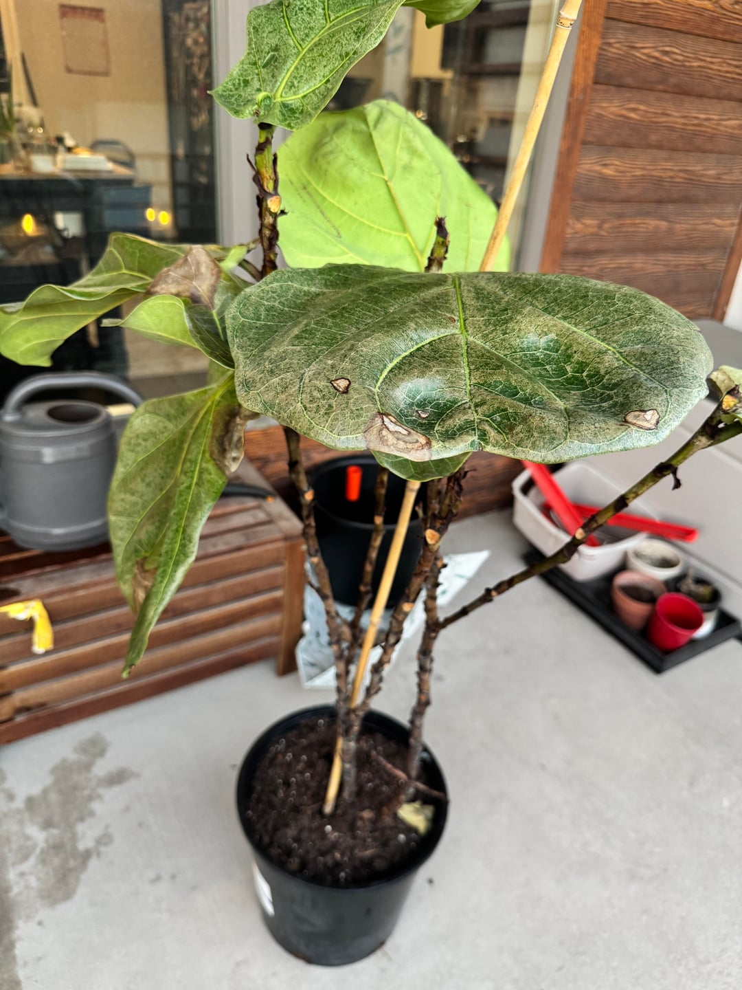 I bought this plant from Costco last month and she was healthy and full of leaves. Then I started to notice that the leaves were drooping and I repotted and made sure that the drainage was good. She also got infested with spider mites and I have cleared that with some neem oil .