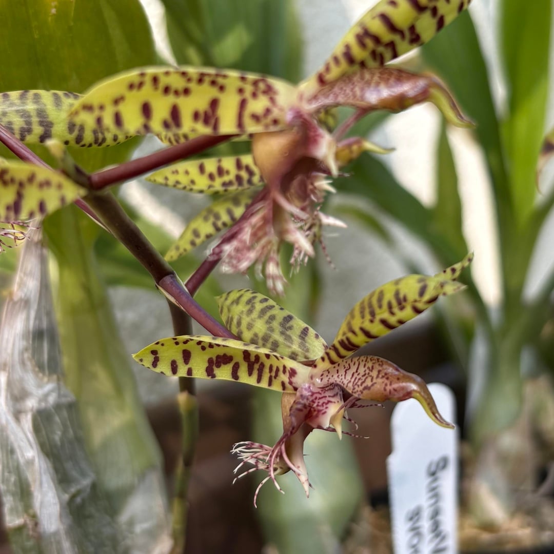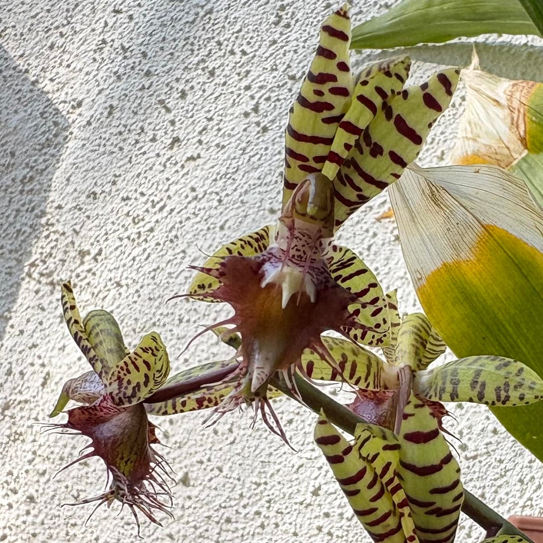 First bloom – super fragrant (spicy soapy cinnamon???) Love the funky plants by Stubbiest_Guiseppe Orchids 7 Comments Stubbiest_Guiseppe 3 days ago Ctsm. semicirulatum x Ctsm. gladiatorium from Sunset Valley Orchids Bobby2769420 3 days ago What is she /he Wild_Challenge2377 3 days ago I should have gotten one of these. I think they might still have them . It’s awesome. Most Catasetum breeding is pretty similar but this one is wild. lance- 3 days ago Very cool and very alien-like. Doesn’t look like SVO has them anymore or else I would definitely add it to the collection 👽 CinLeeCim 3 days ago Cool 👾 islandgirl3773 3 days ago Love it! FeralSweater 3 days ago Out of this world!