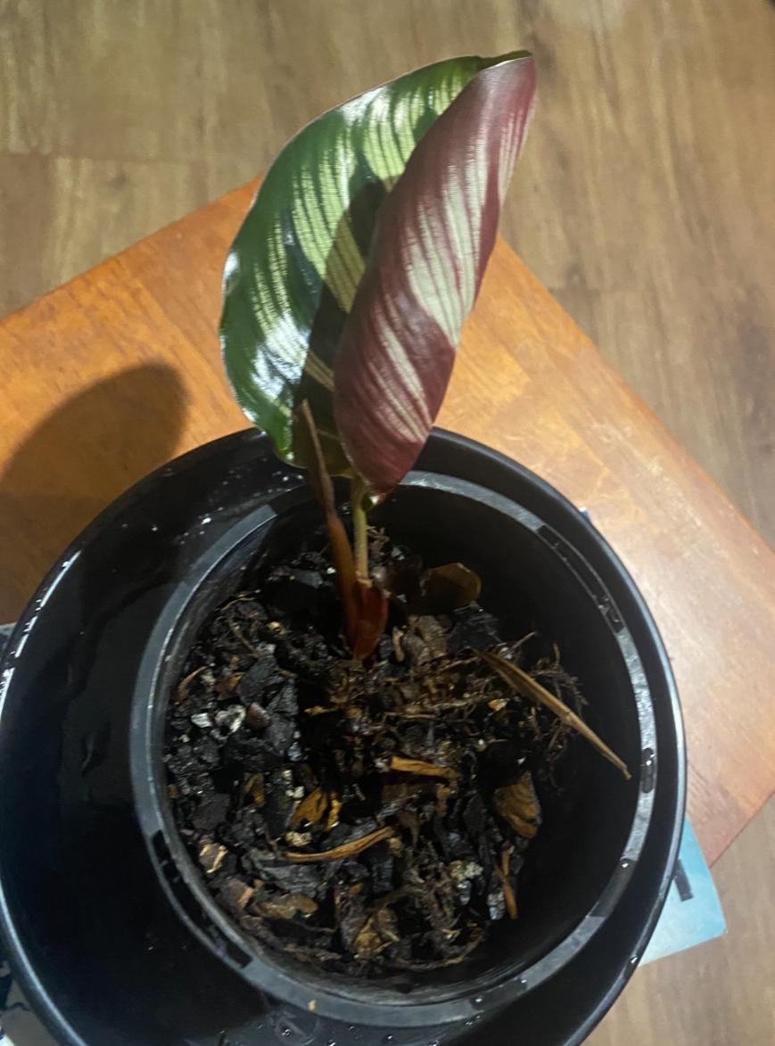 So I posted asking for help as the plant was dying. (Not quite) everyone said it was too far gone and to give up. The last leaf did indeed die, I trimmed everything back and just let the soil rest because it was far too wet. 44 DAYS LATER, I see this beautiful new leaf, and what looks like another on the way.