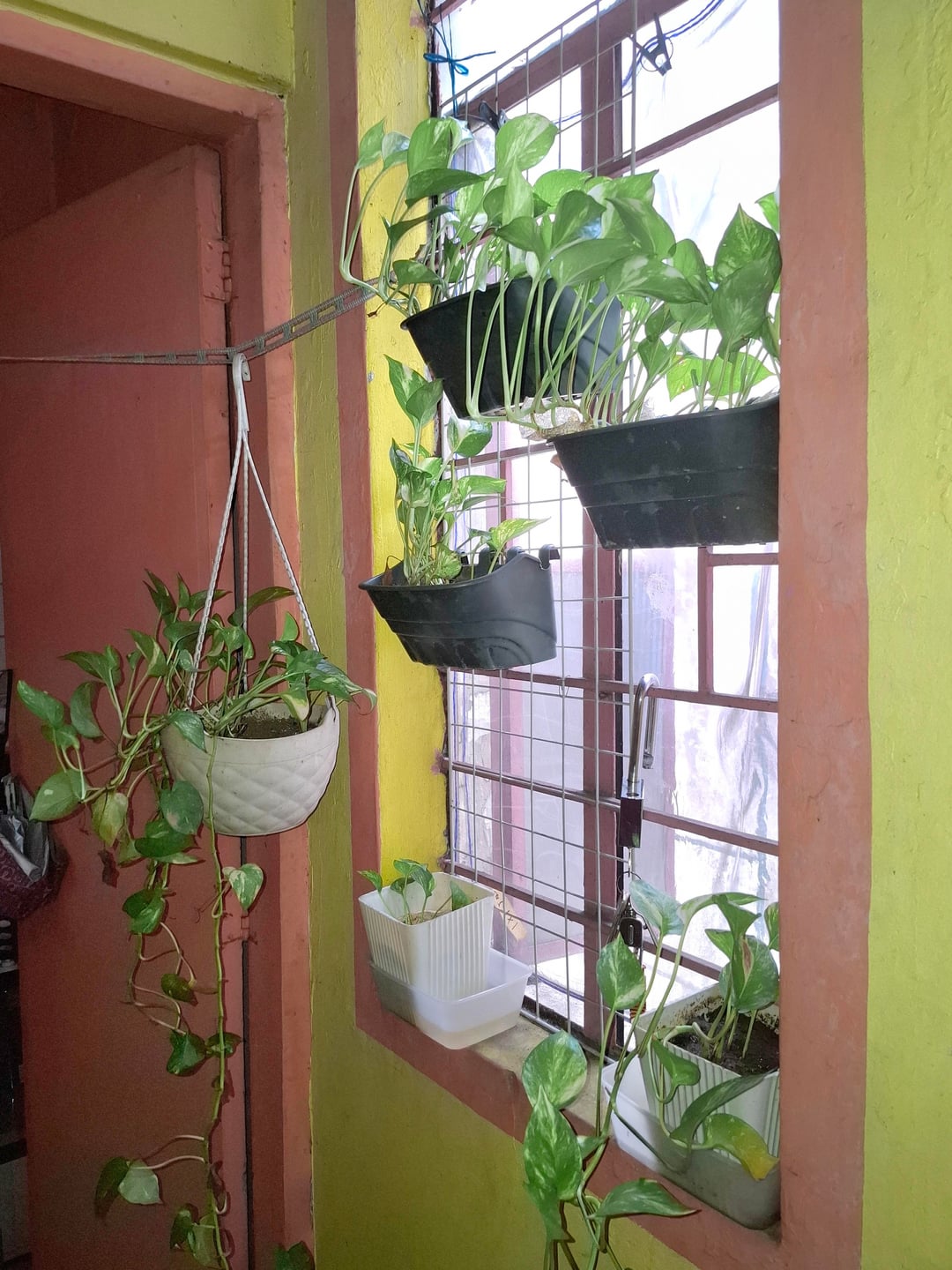 The clothesline serves as a plant hanger when it's not laundry day. Everything else is grown and propagated inside the house, with semi-sunlight. I tried using plant lights but either they die or too slow to grow. by Mercurial_Lynx Indoor Garden 4 Comments Current_Speaker_2514 3 days ago It’s looking good. Patient_Many4455 3 days ago Very cozy. 👍 -_-Batman 3 days ago bravo  AddressOk7596 2 days ago Very nice and clever 💡