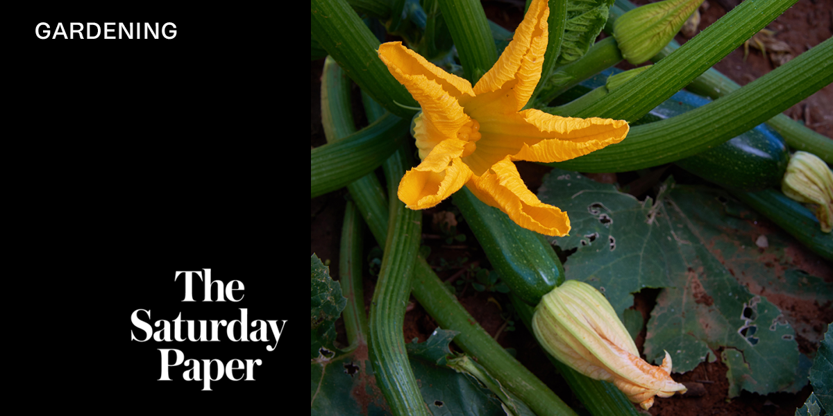 The deterioration of zucchini bushes is one of the characteristic signs of autumn. Mine are in wicking boxes on the back verandah. They have had a very good season. My pantry is full of zucchini pickle, the freezer of ratatouille, and still my fridge contains more zucchini than I can eat. I can’t give them away, because everyone I know is tired of zucchini.