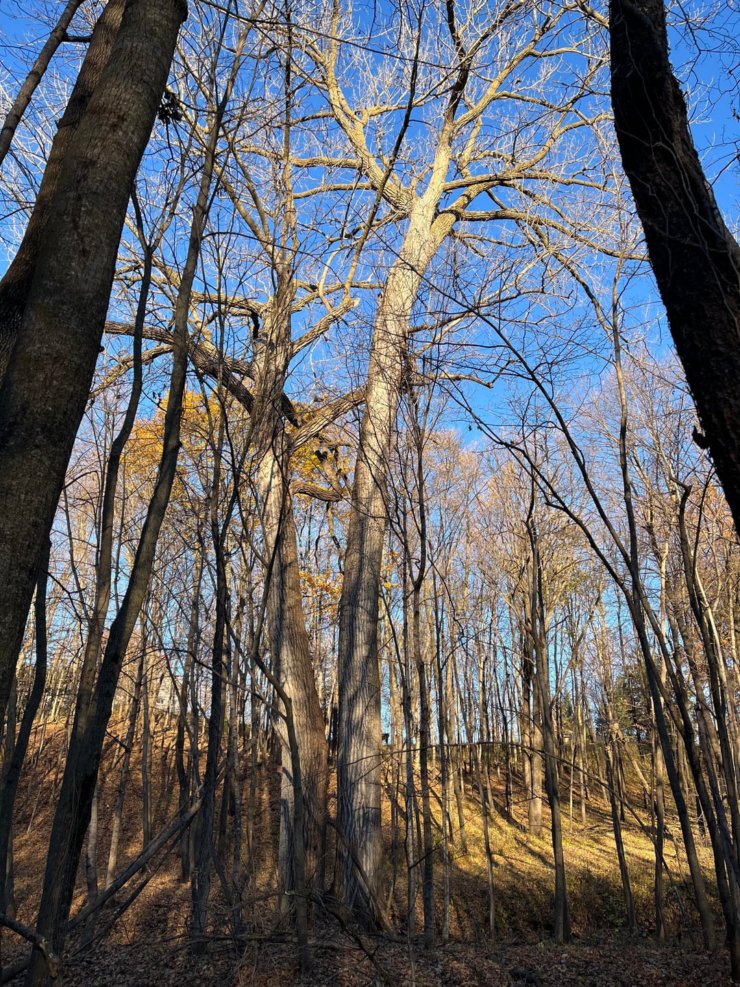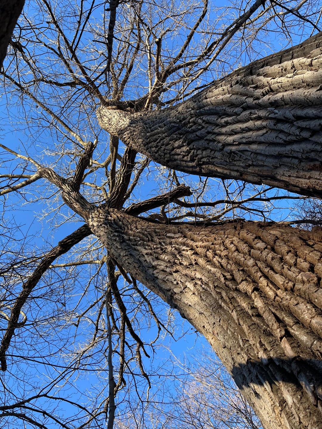The_Penaldo 19 hours ago Pretty sure that’s a massive cottonwood, the bark is far too furrowed for sugar maple. You likely have a young sugar/black maple understory with a mature first growth/colonizing tree over story.