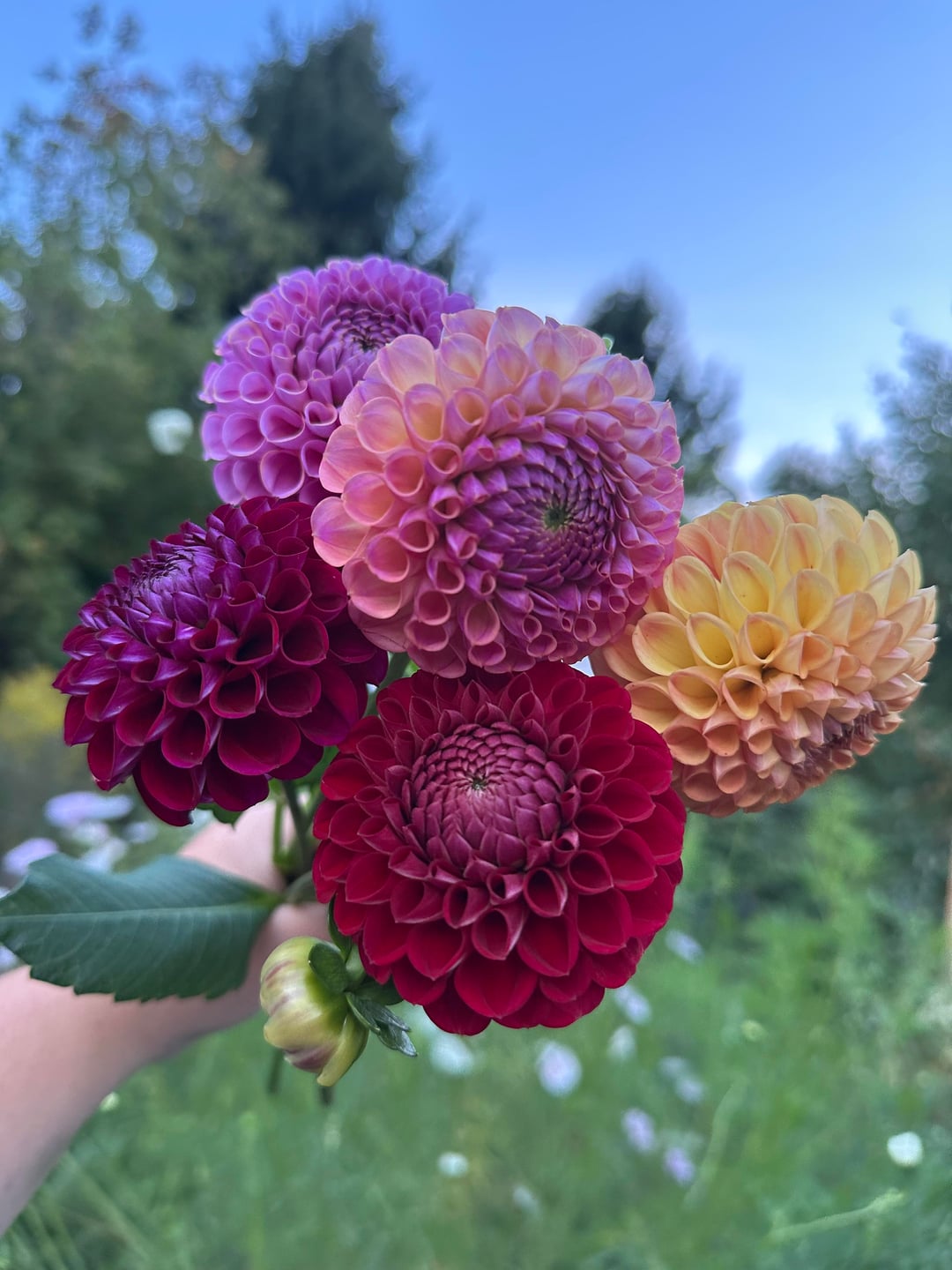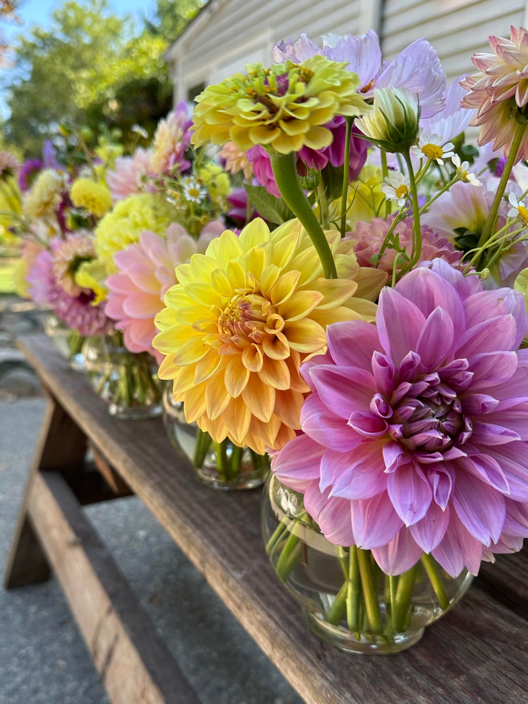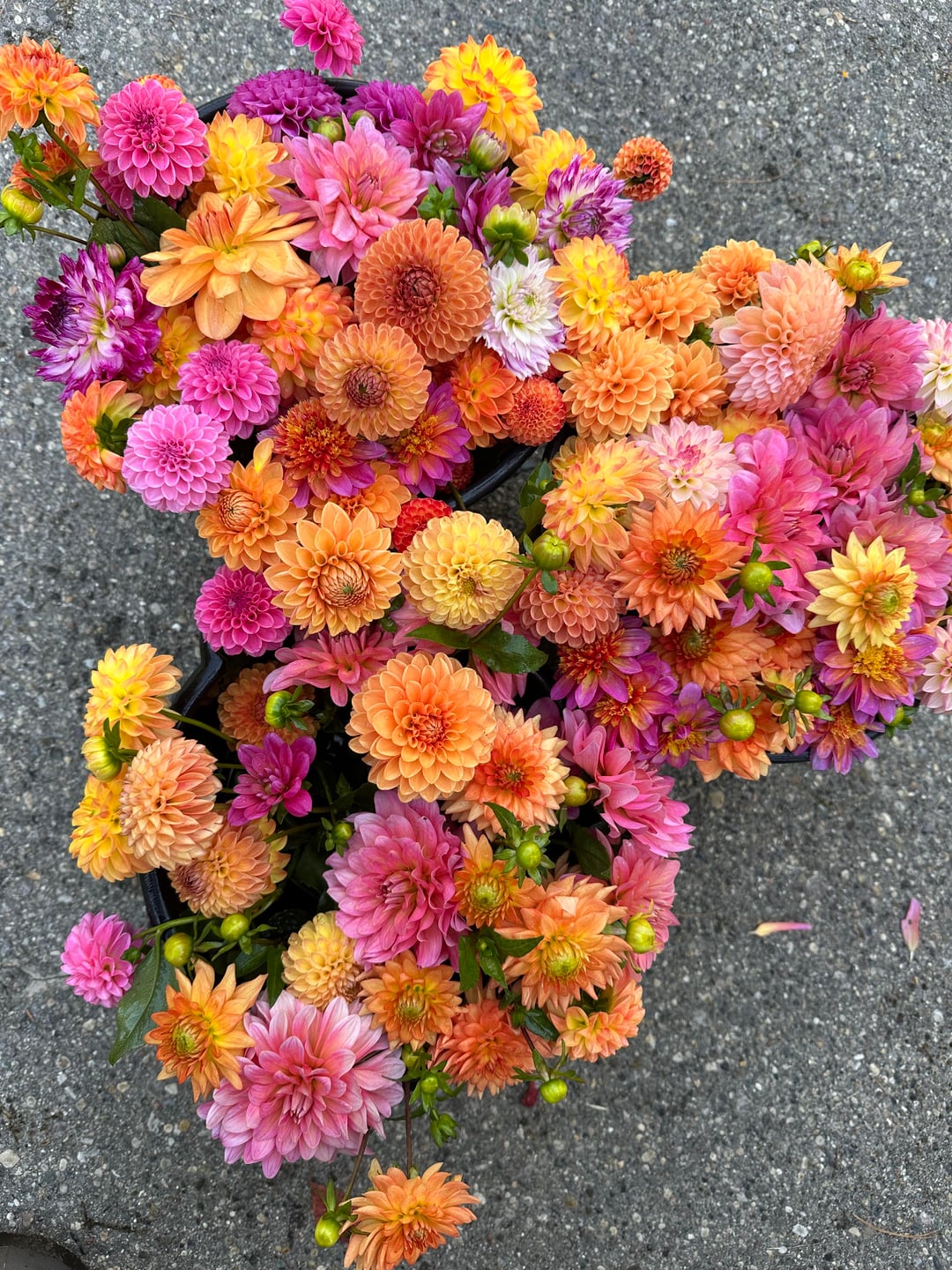 We are Danielle & Kyle and we love dahlias! We have been endlessly digging with so many tubers ready for new homes. We are a small family farm in SE Michigan growing dahlias since 2017 when we grew some for our wedding 💒 and have been hooked ever since!